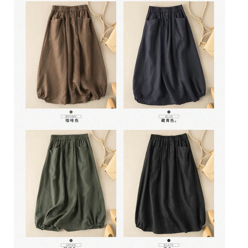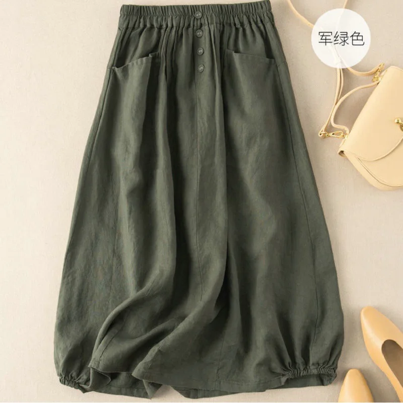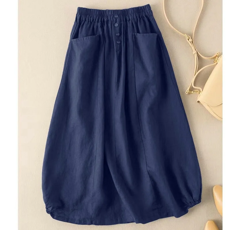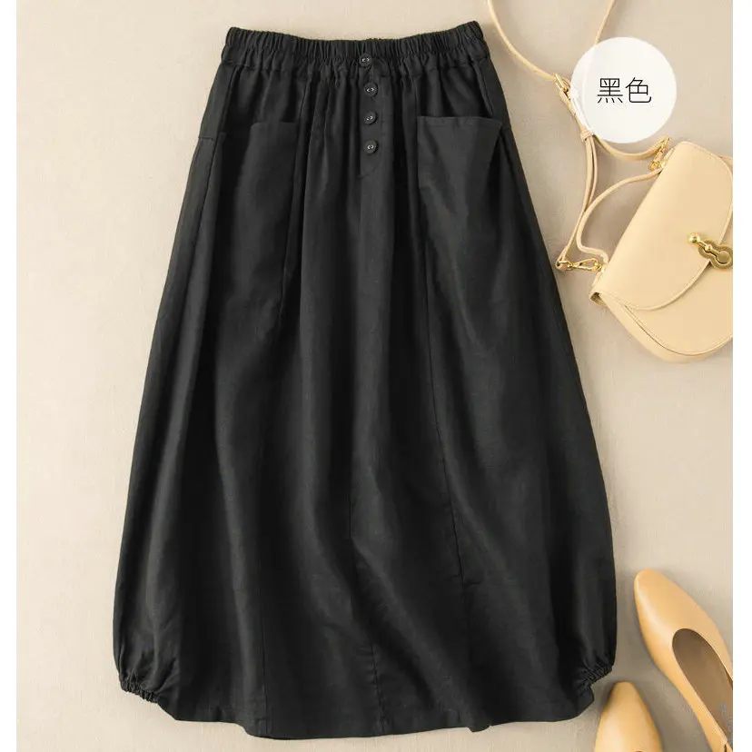 Newest Women Summer Autumn M-5XL Size Design Solid Vintage Causal Long High Waist A-line Thin Lantern Loose Skirt Female Clothes