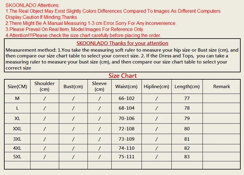 SizeWaistSkirt length