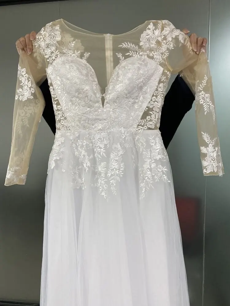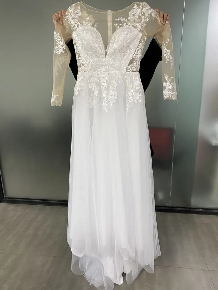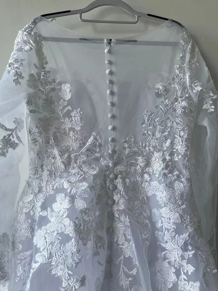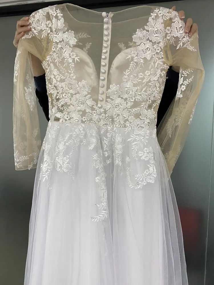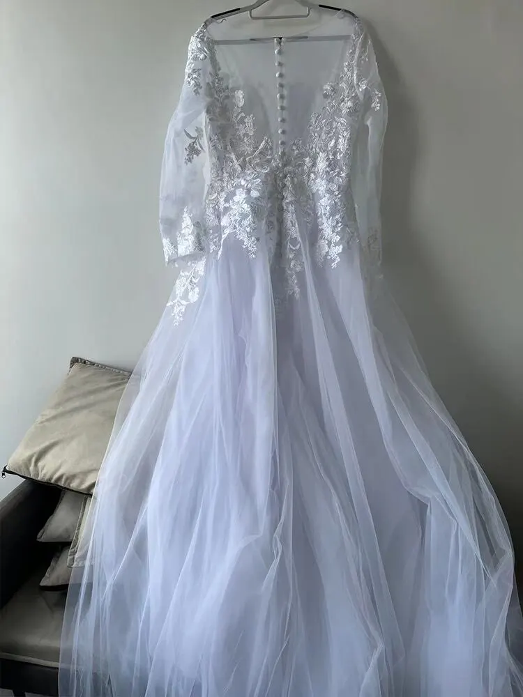 O-Neck Appliques Wedding Dresses Elegant Tulle A-line Bridal Gown Illusion Backless Buttons Vestidos De Noiva Mariage