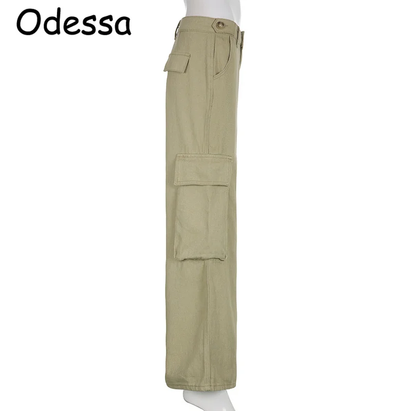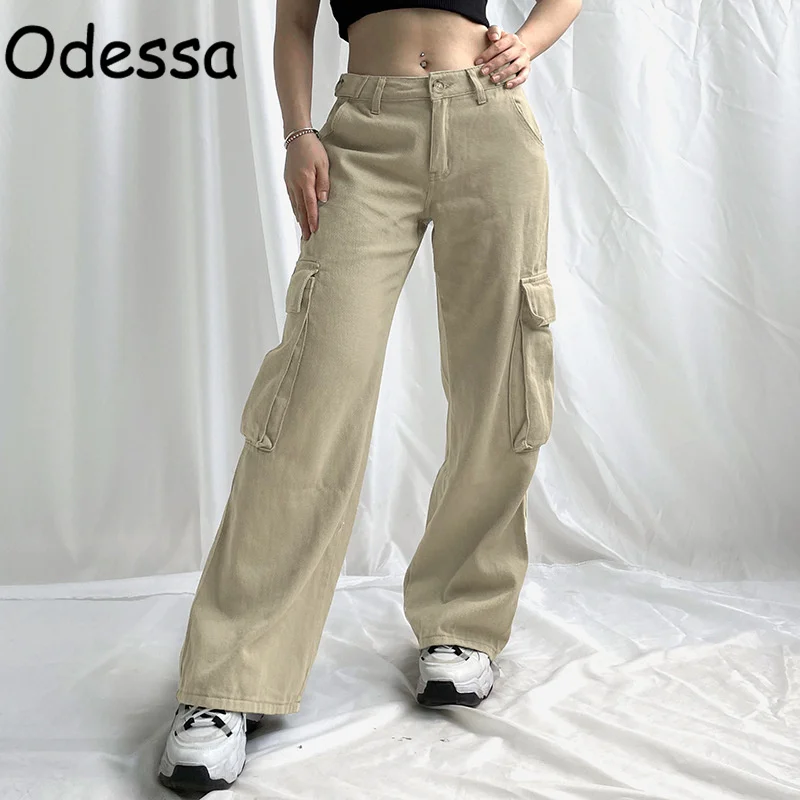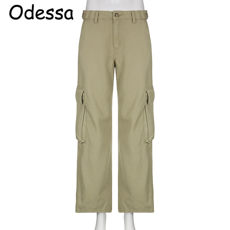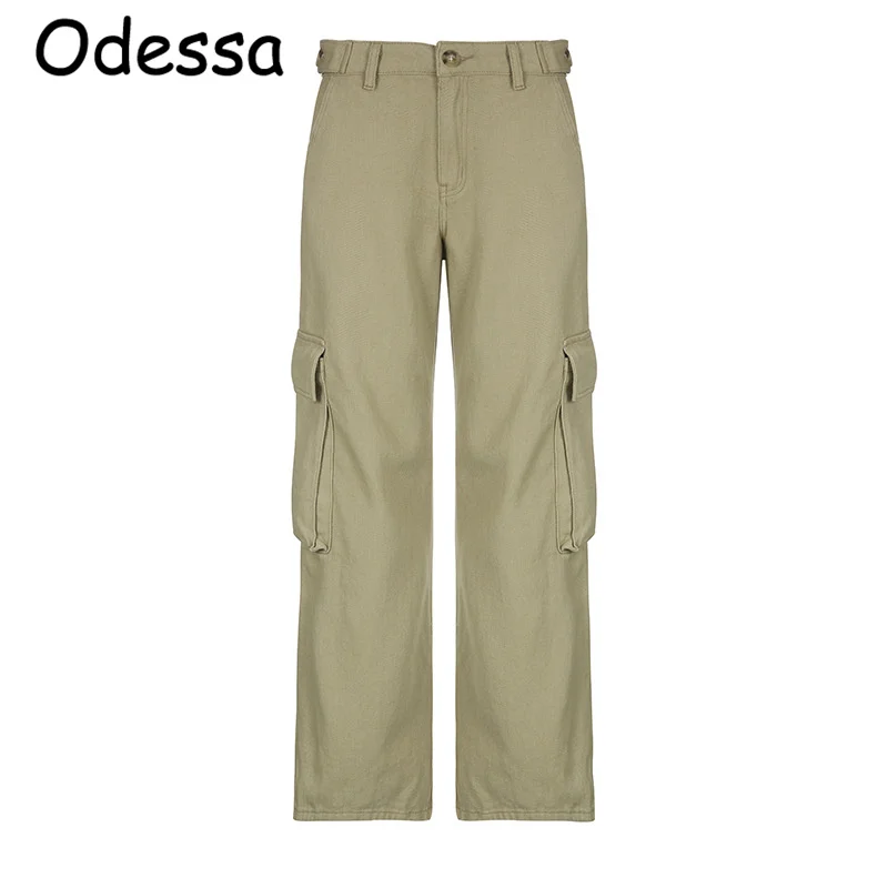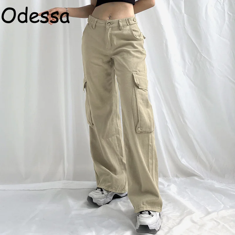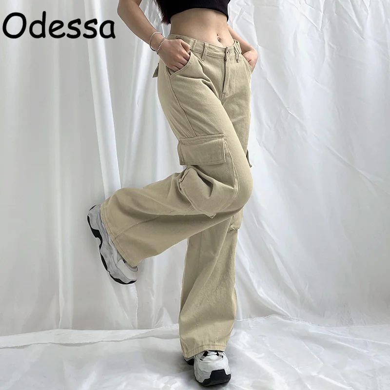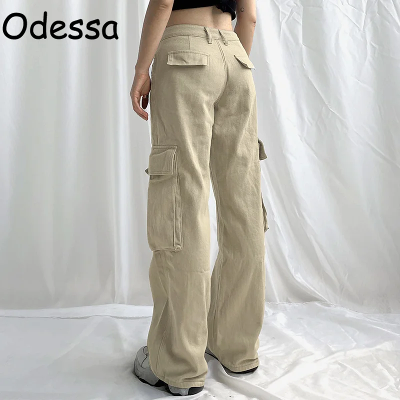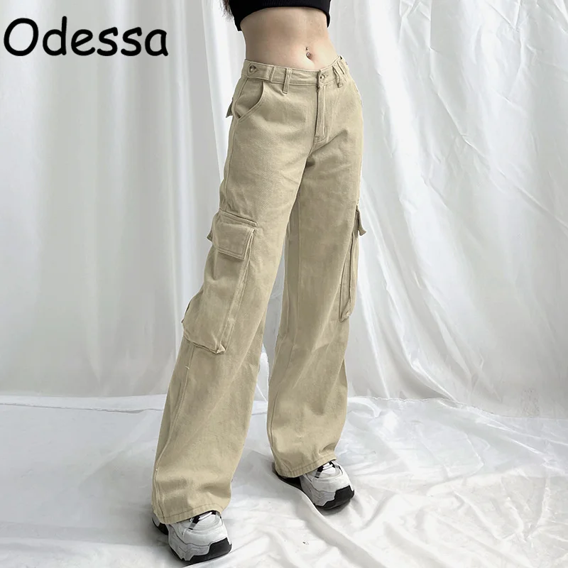 Odessa Vintage 90S Cargo Pants Women's Fashion Low Waist Trousers 2022 Autumn Overalls Baggy Straight Jeans Fairycore Oversized
