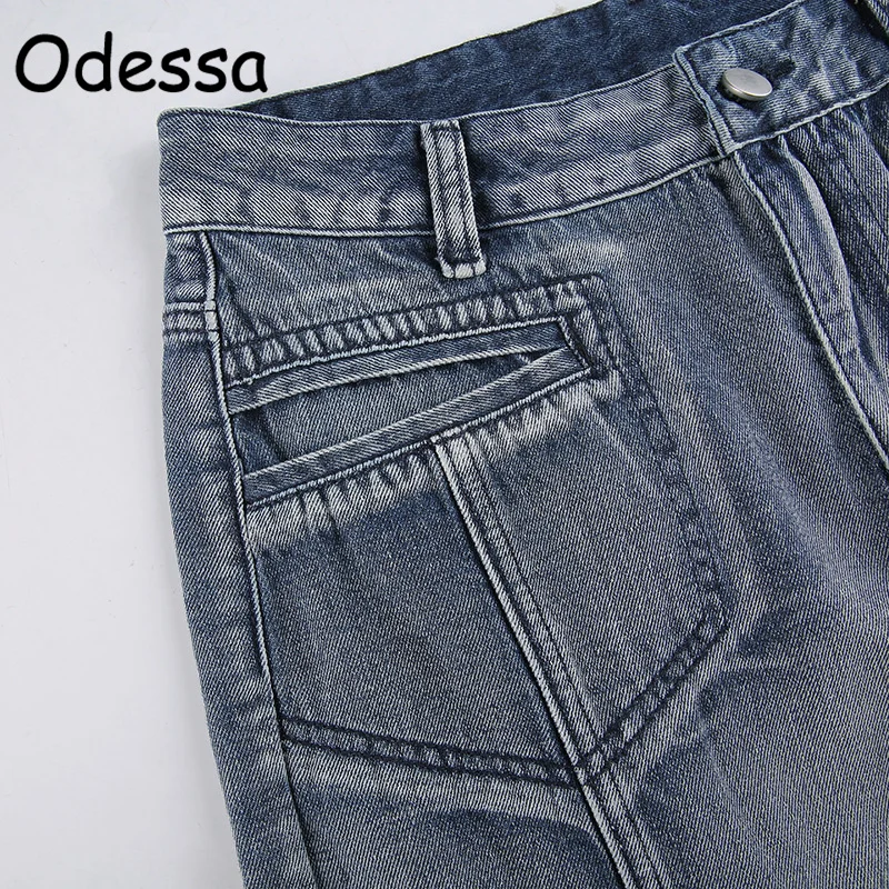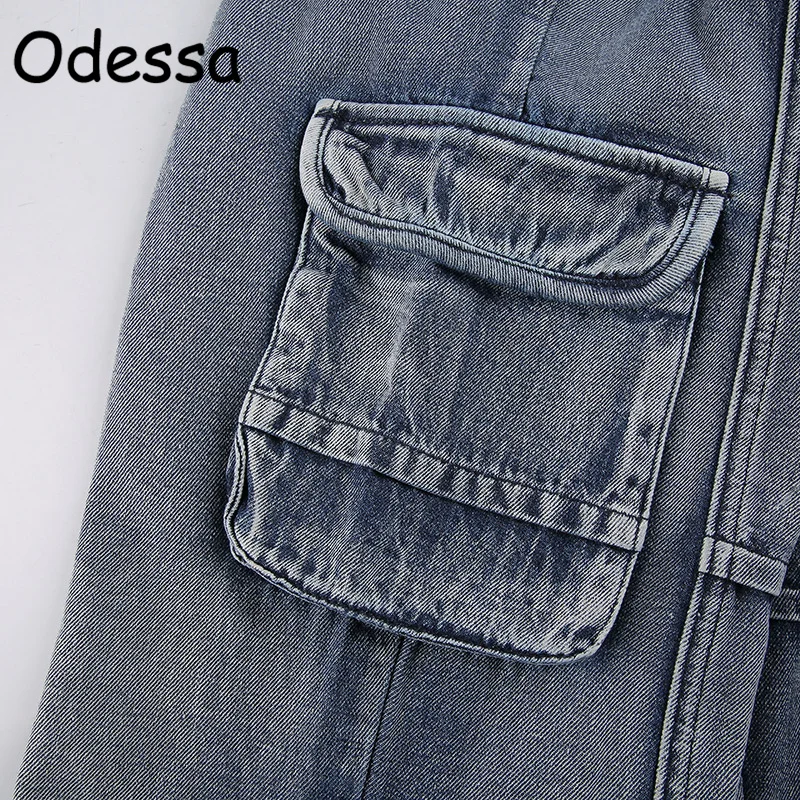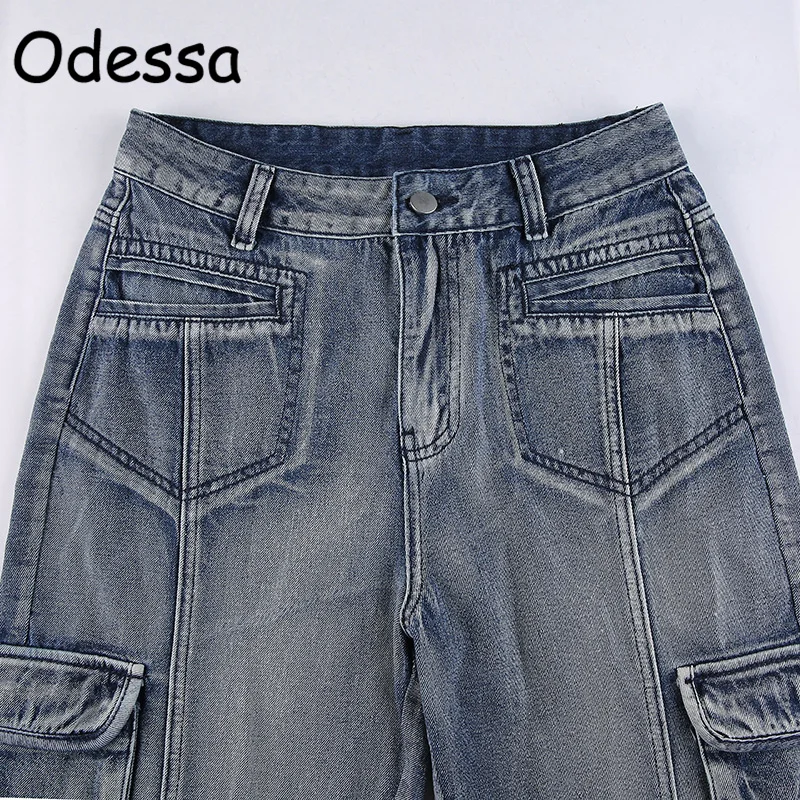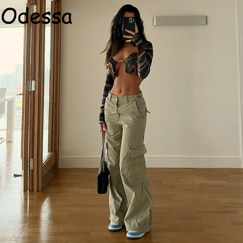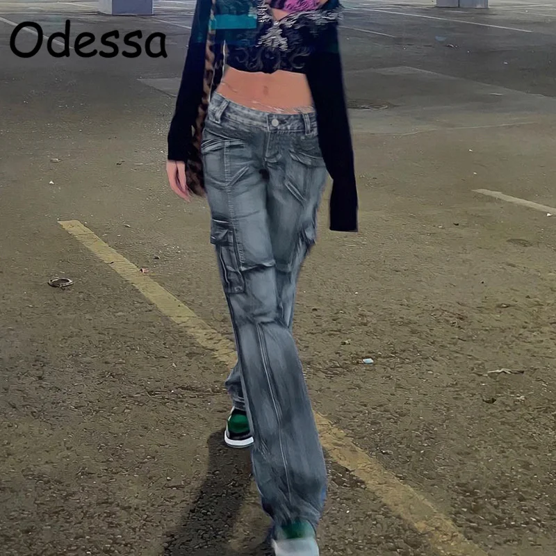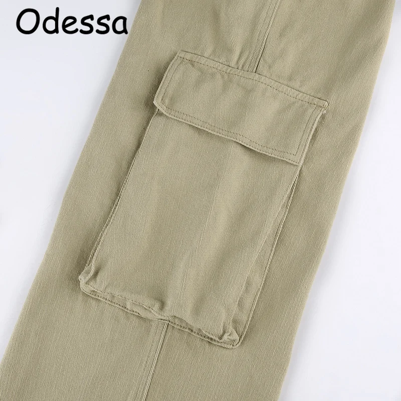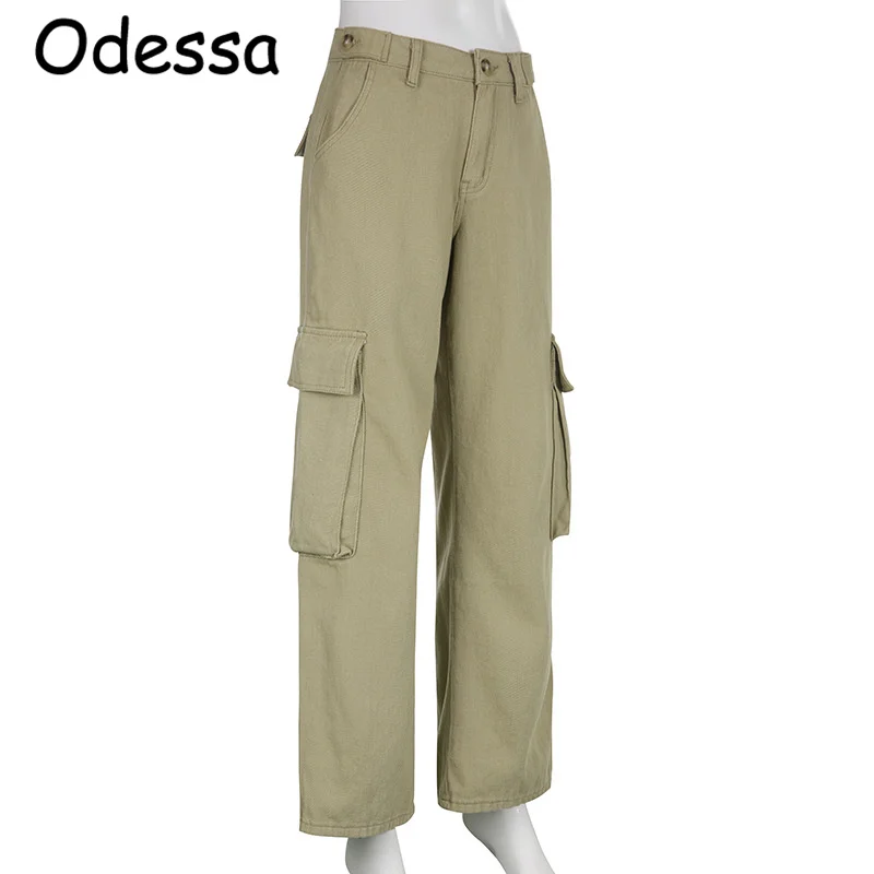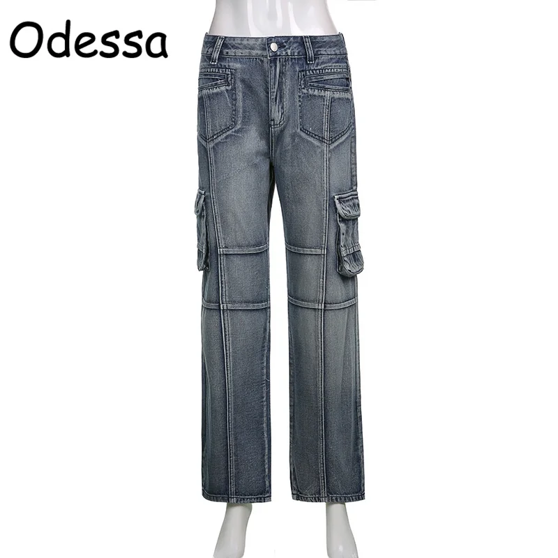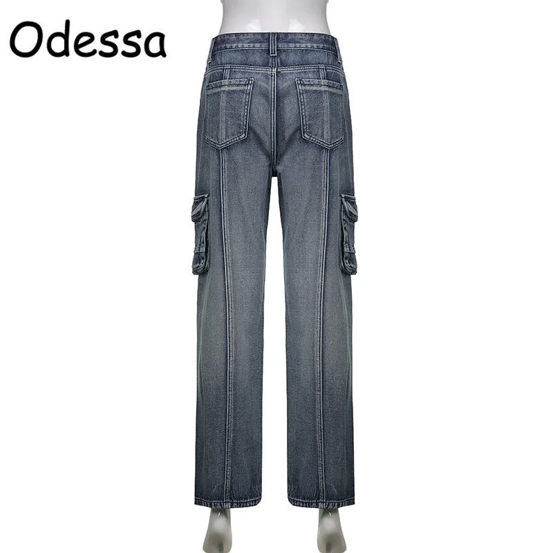 Odessa Vintage 90S Cargo Pants Women's Fashion Low Waist Trousers 2022 Autumn Overalls Baggy Straight Jeans Fairycore Oversized