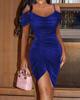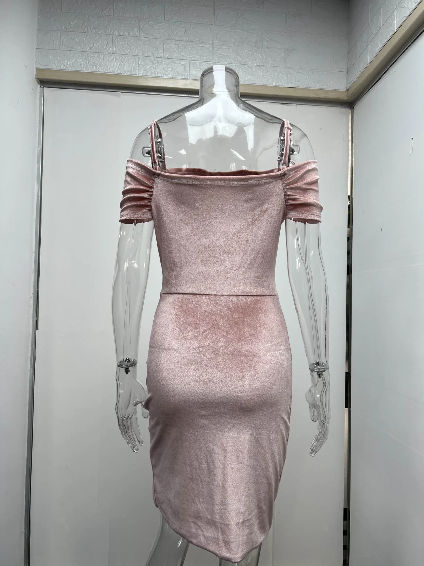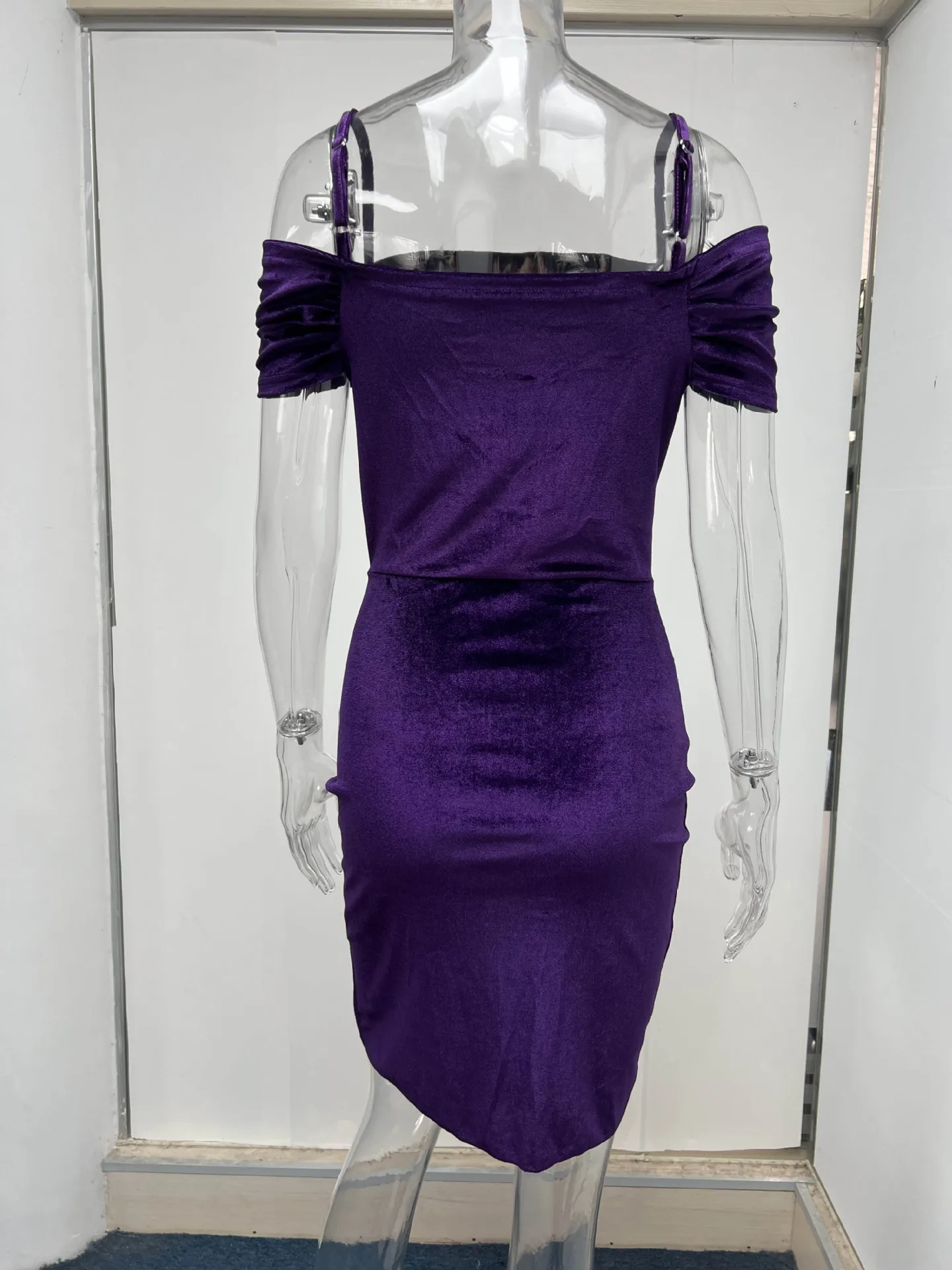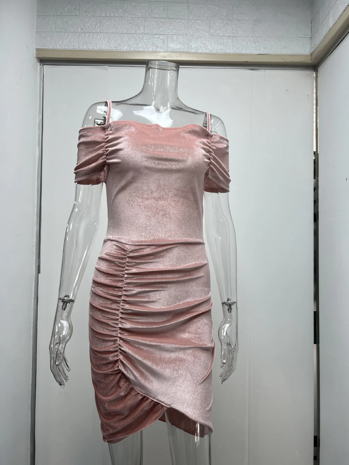 Off the Shoulder Sexy Solid Ruched Velvet Bodycon Dress Women Short Sleeve Skinny Evening Dinner Dresses Summer Mini Dresses