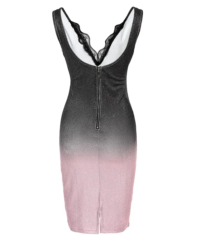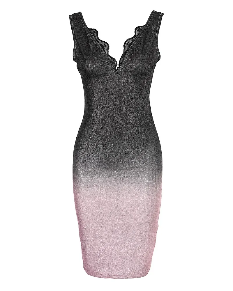 Ombre Colorblock Contrast Lace Glitter Bodycon Party Dress