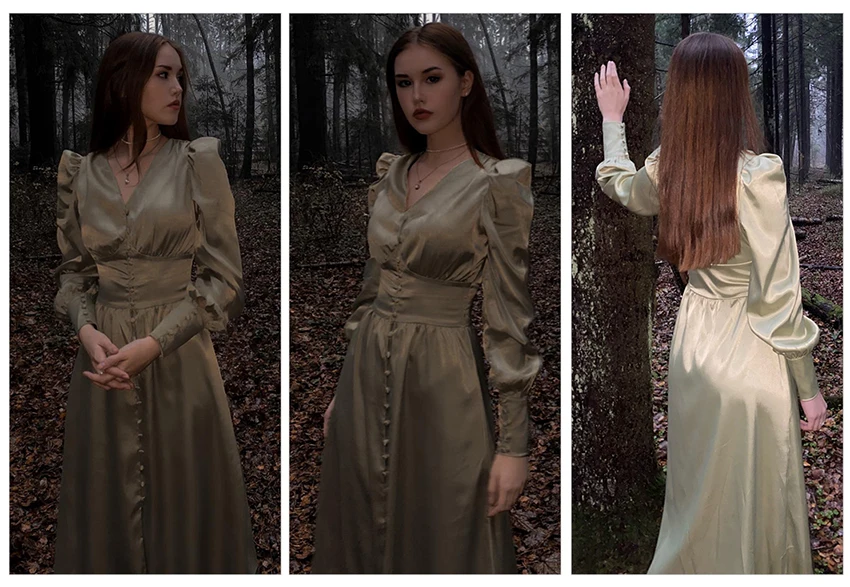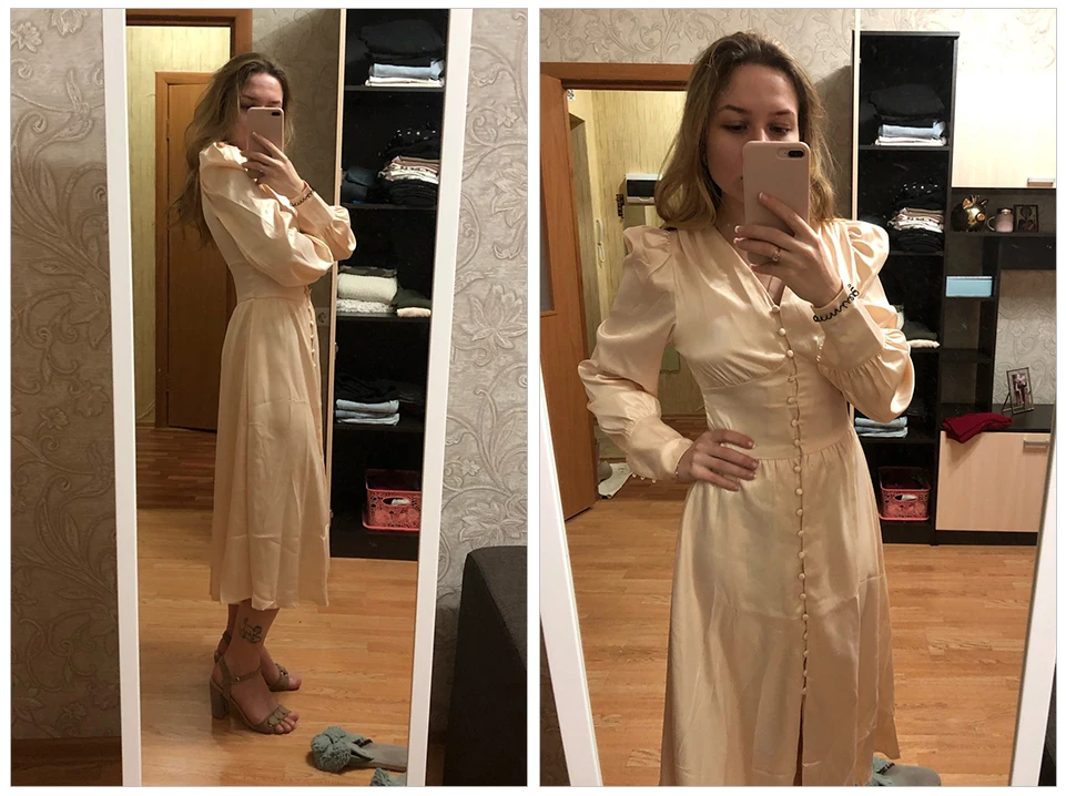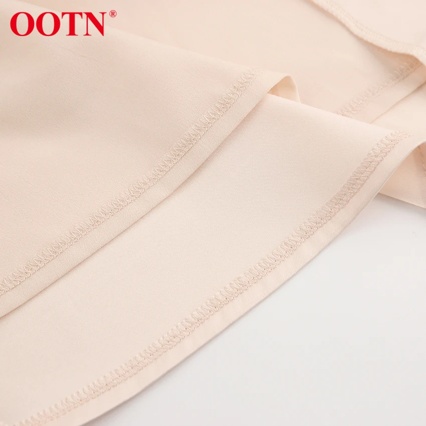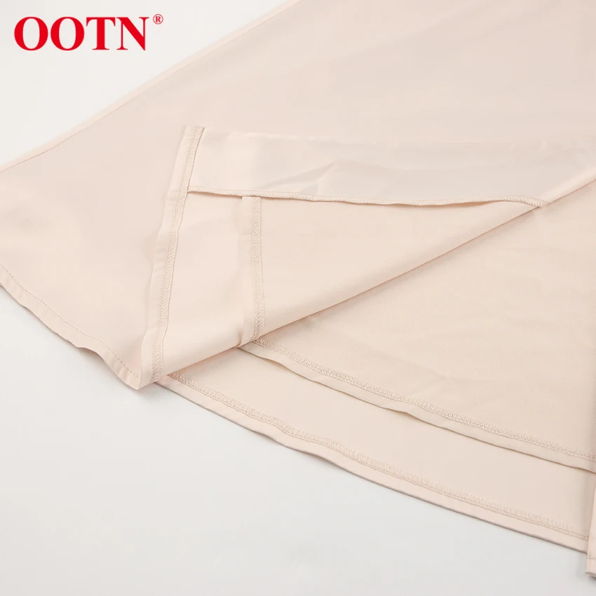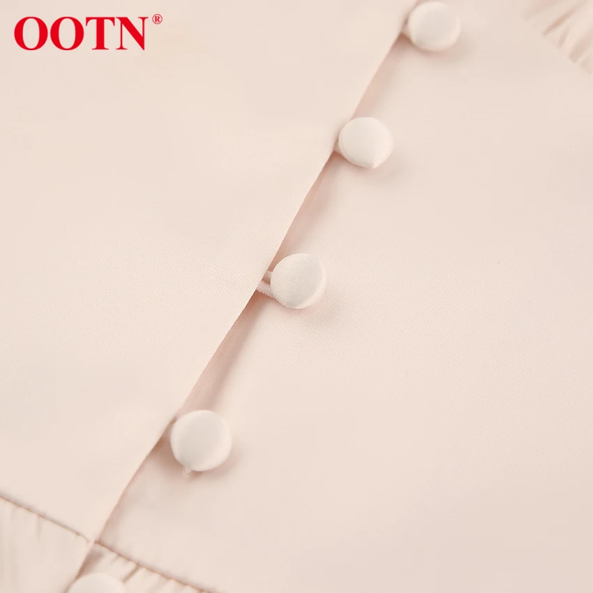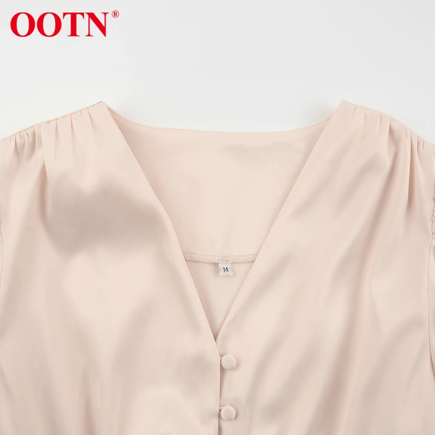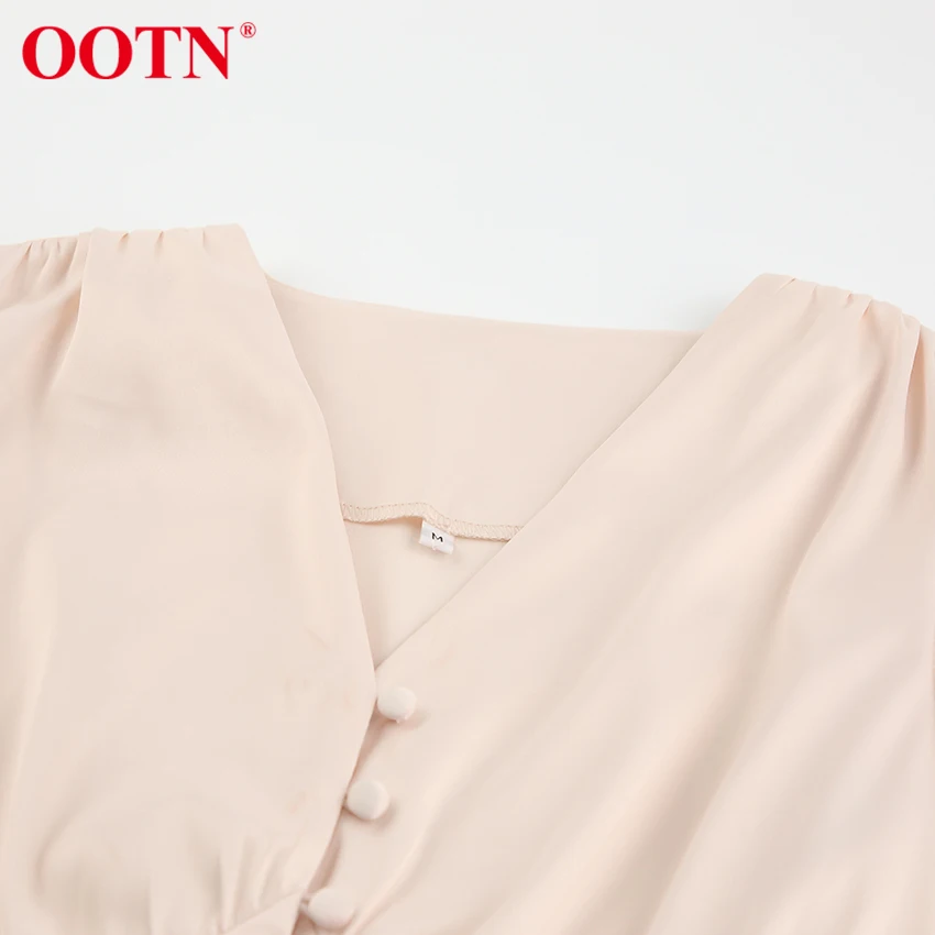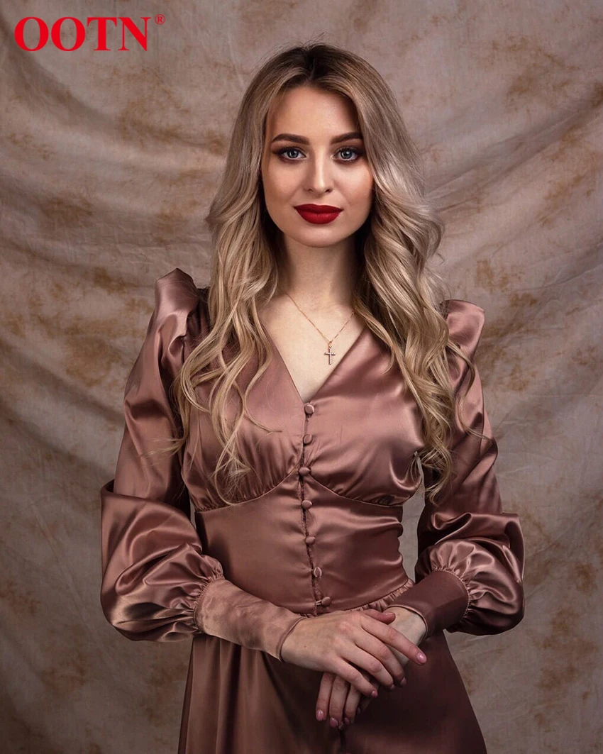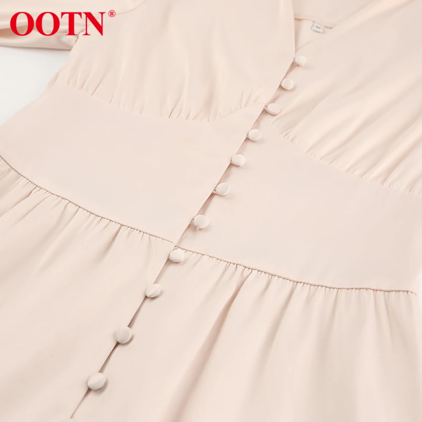 OOTN White Single Breasted Elegant Dress For Women Party Robe High Waist Satin Long Dress Chic Midi Dresses Lantern Sleeve 2022