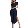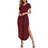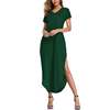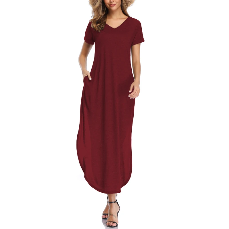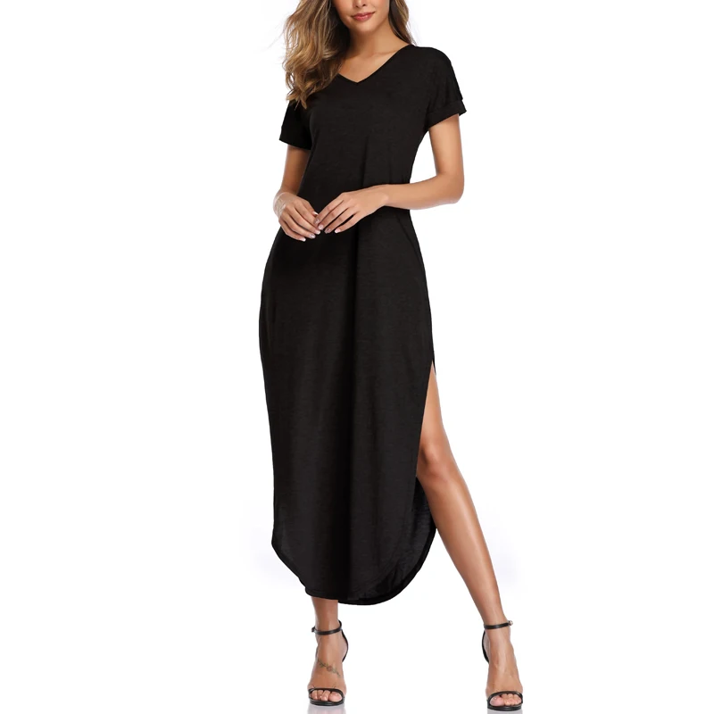 OTEN Elegant Women Dress Loose short sleeves Ankle-Length 2019 Summer V-Neck Vintage Solid Color pocket Casual Sexy Split S-2XL