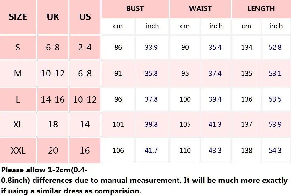 2.The size may have 2-3cm differs due to manual measurement. Please note when you measure.