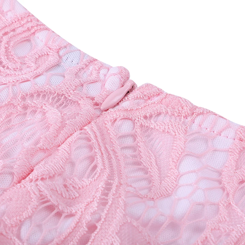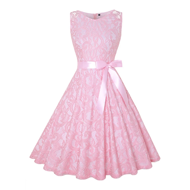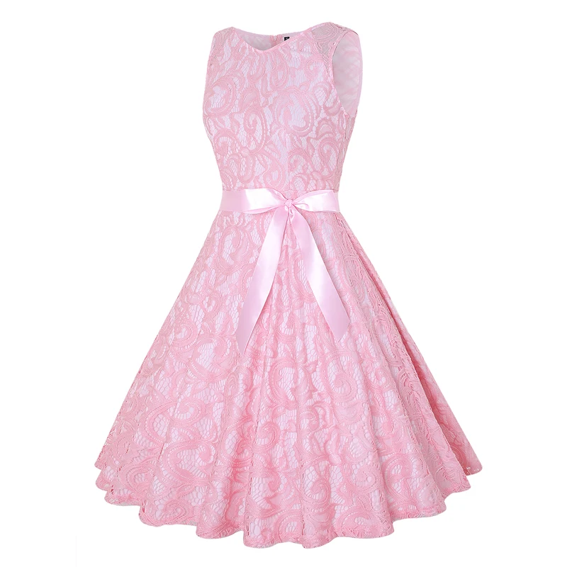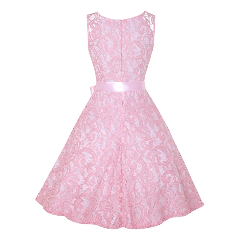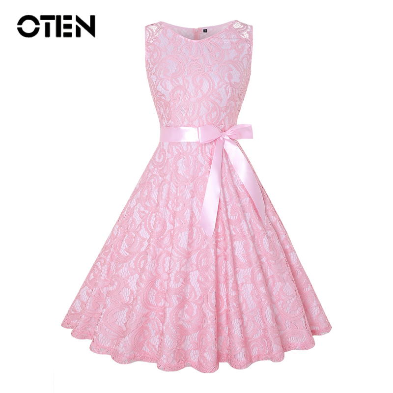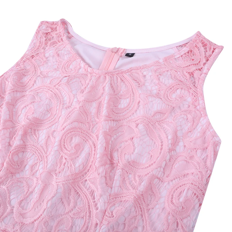 OTEN Plus Size 4XL Pink Lace dress Women Sexy Summer 2018 Sleeveless V Neck Back Zipper Ladies Knee Length Midi Party dress