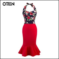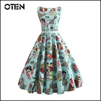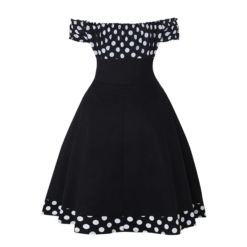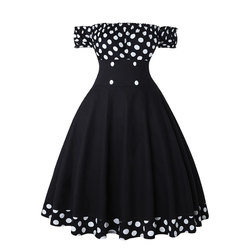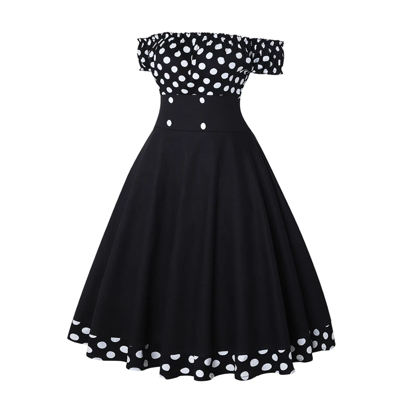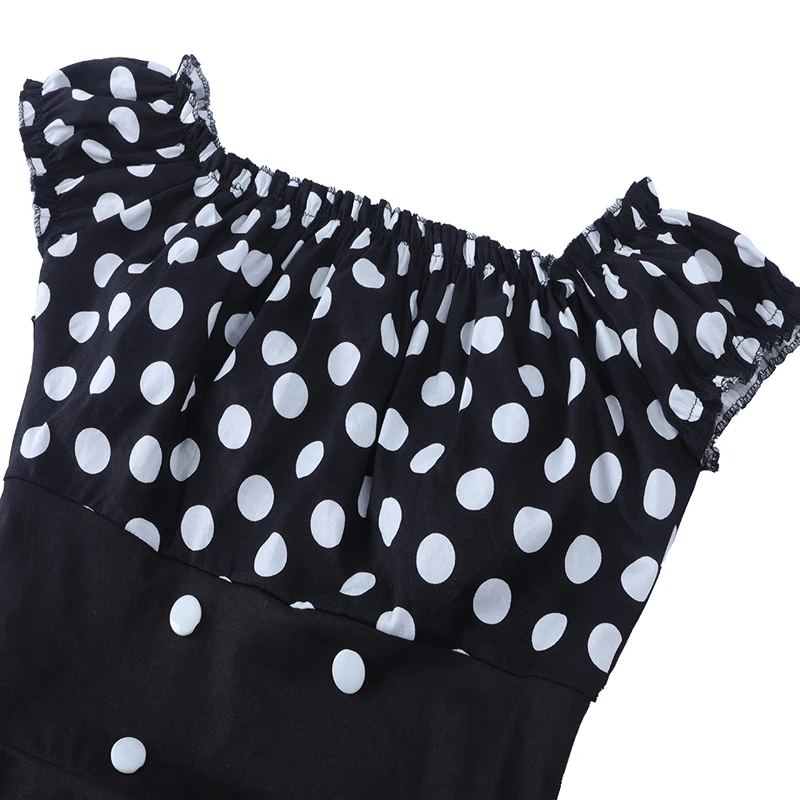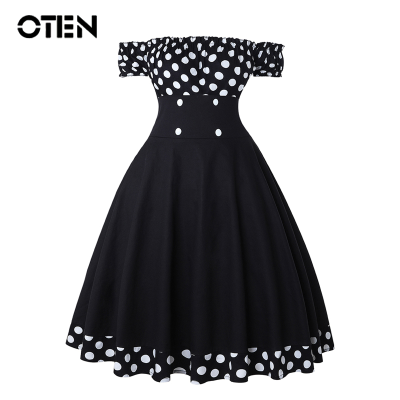 OTEN Sexy Women dress Summer Off shoulder Polka Dot Printed Button A Line Pin up Vintage Rockabilly Skater Party robe dresses
