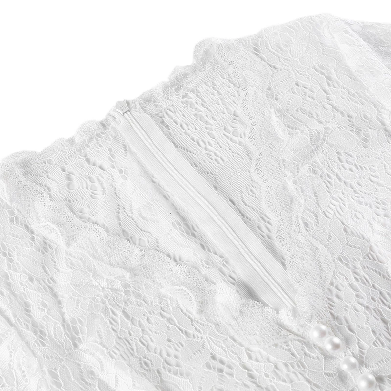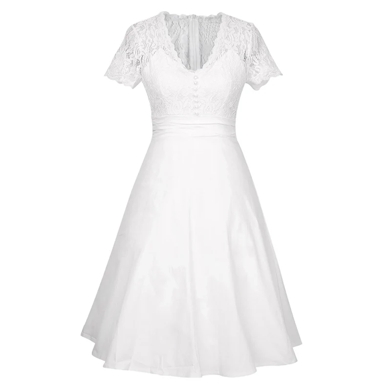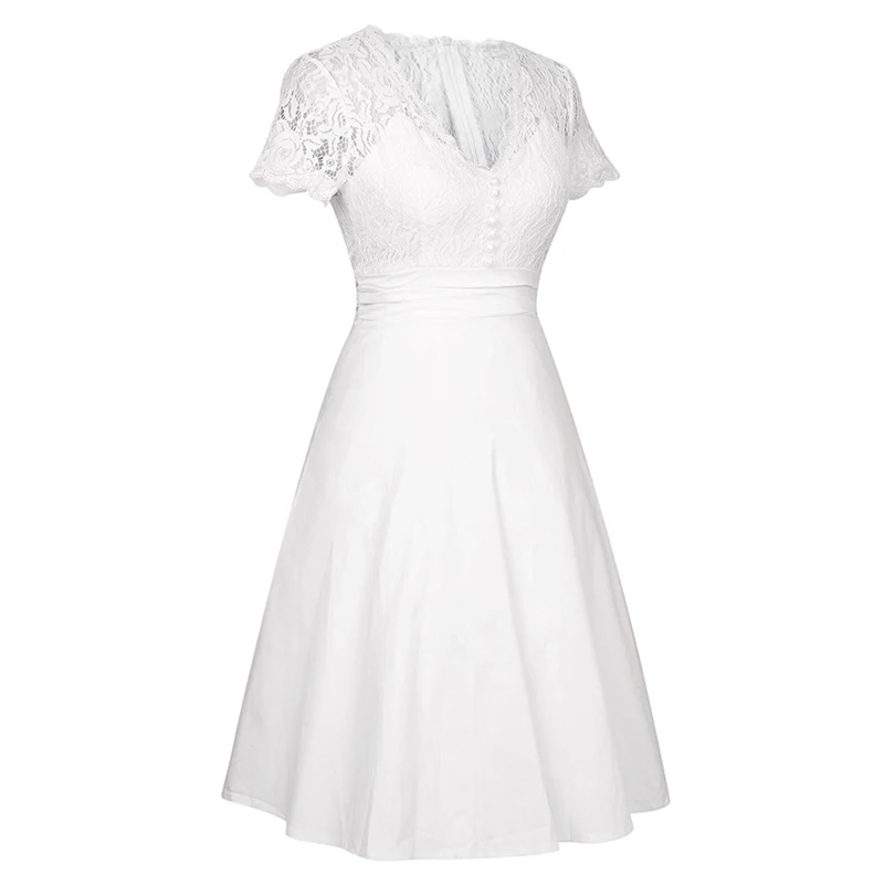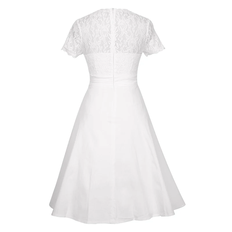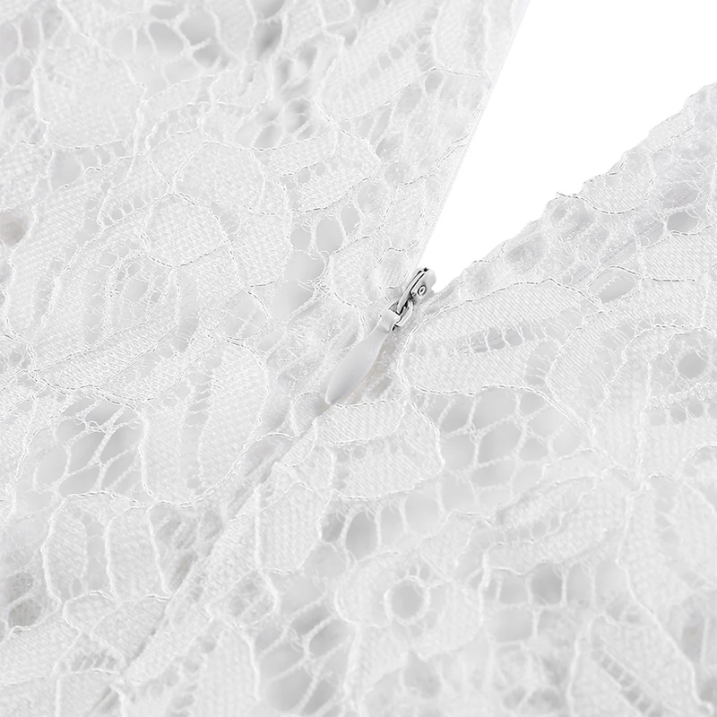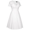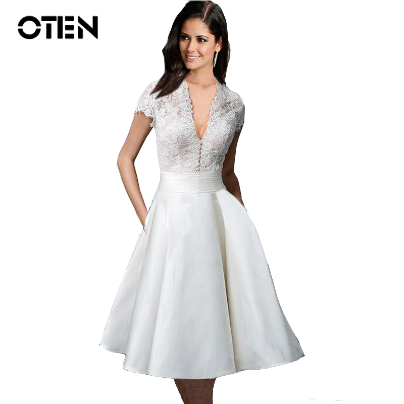 OTEN Summer Women Sexy Deep V Neck High Waist White Lace Patchwork Rockabilly Pin Up Casual Evening Party Ladies Dresses Kleider