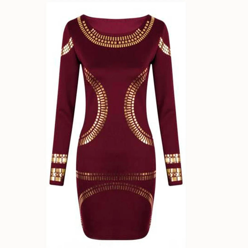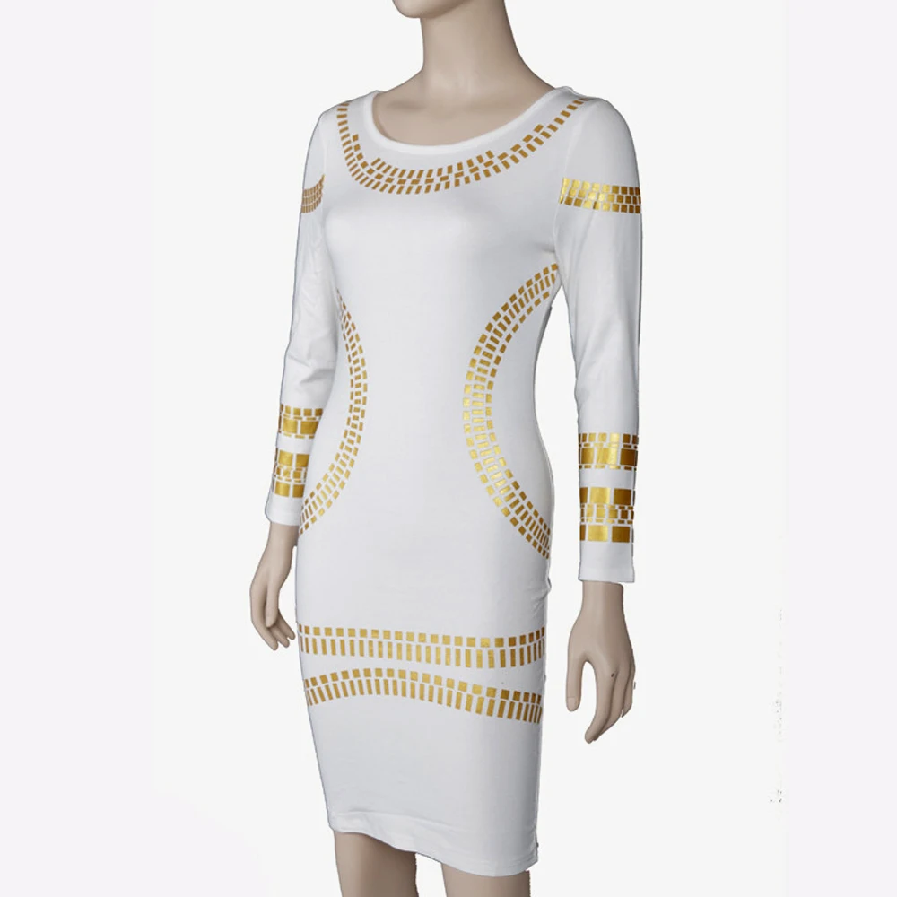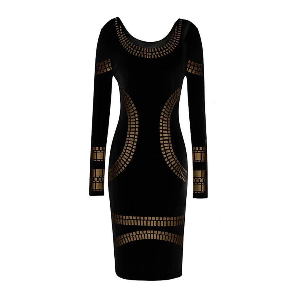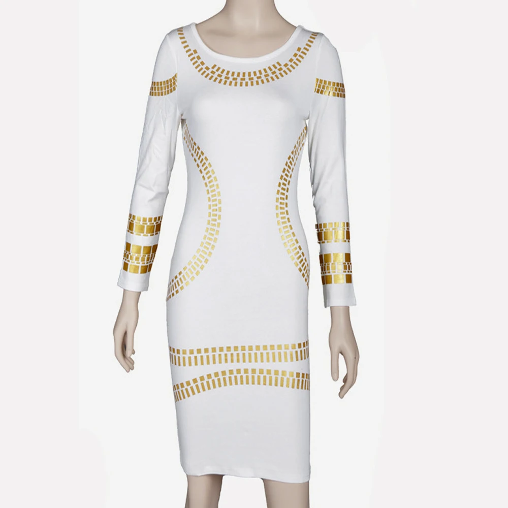 OTEN Women Vintage Long Sleeve Bronzing Appliques Elegant Bodycon Dress Stretchy Party Pencil Vestidos De Fiesta Taya Grande 5XL
