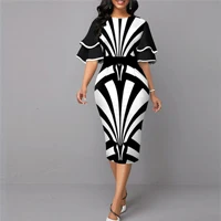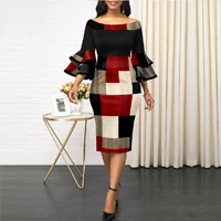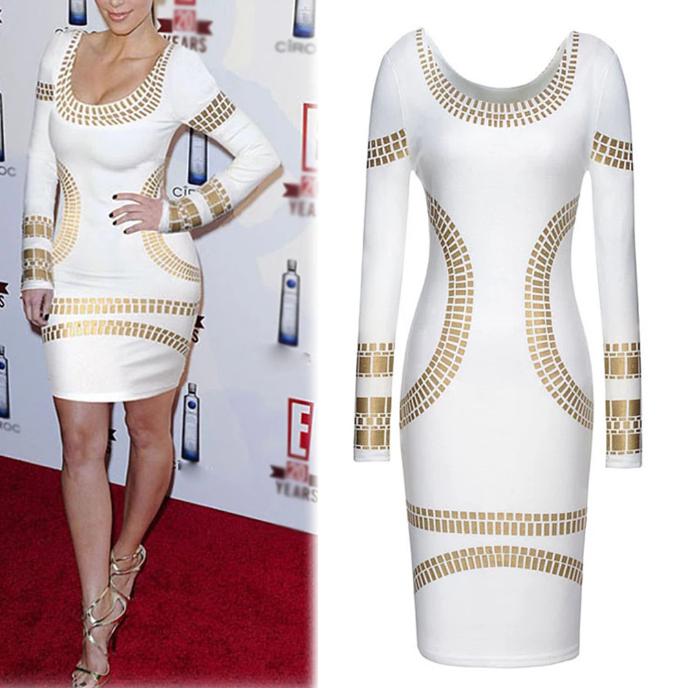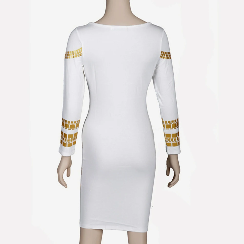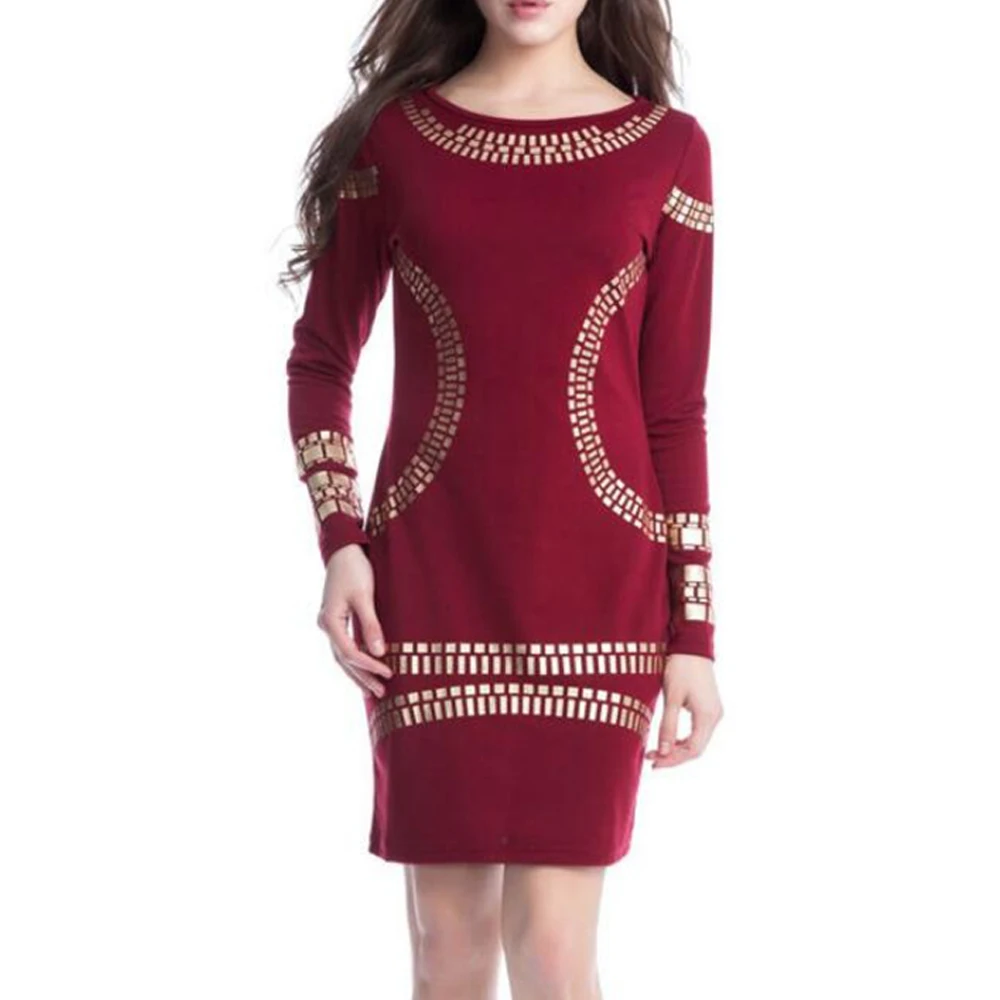 OTEN Women Vintage Long Sleeve Bronzing Appliques Elegant Bodycon Dress Stretchy Party Pencil Vestidos De Fiesta Taya Grande 5XL