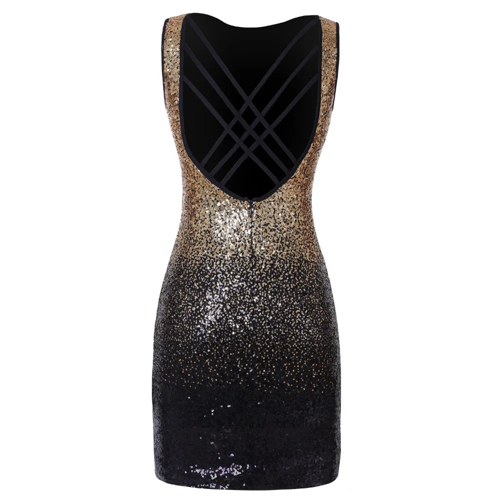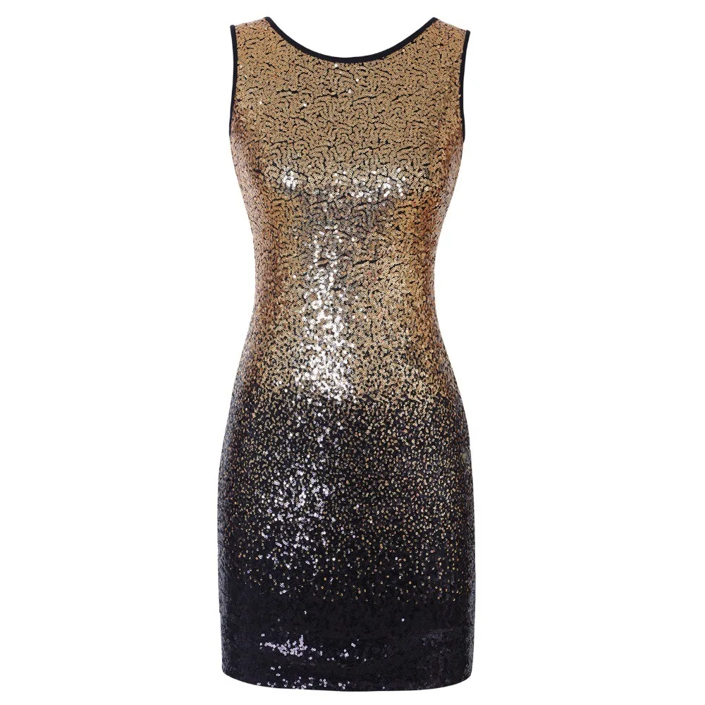OTEN Women's Round Neck Sequin Dress Nightclub Sleeveless Evening Party Dress Slim Sheath Pencil Bodycon Dress Robe Vestidos