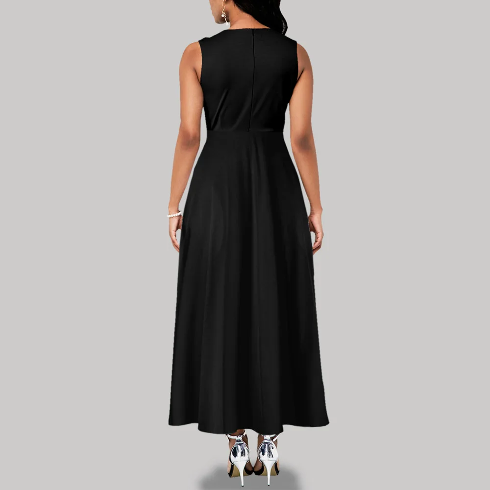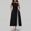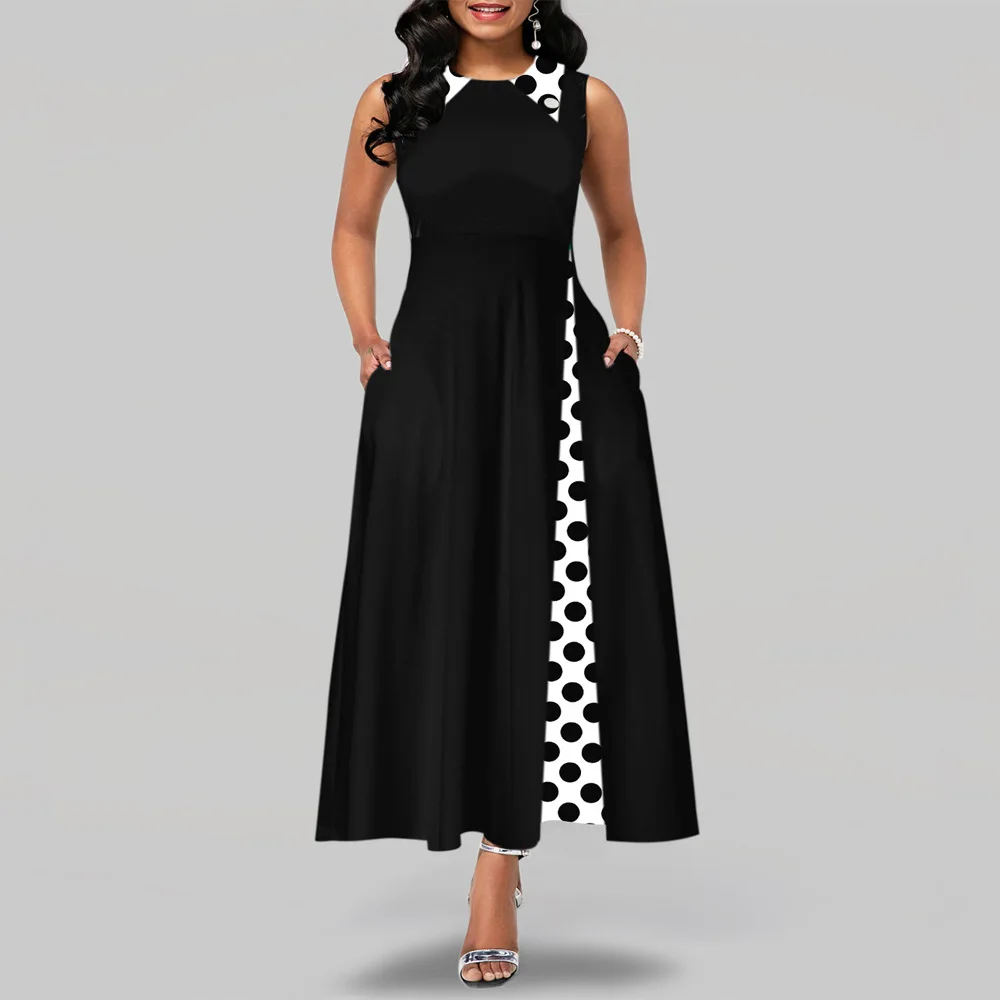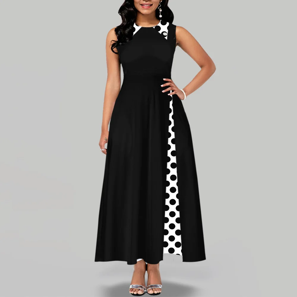 OTEN Women's Summer Sleeveless Summer Polka Dot Patchwork Elegant Long Dress Casual A Line Party Swing Maxi Dress Vestidos