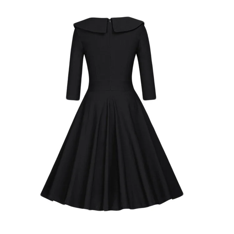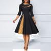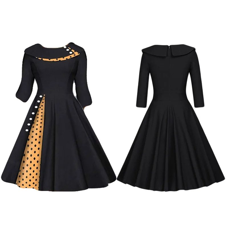 OTEN Women's temperament lapel polka dot stitching sleeves retro hip-wrapped A-line large swing slim knee-length dress