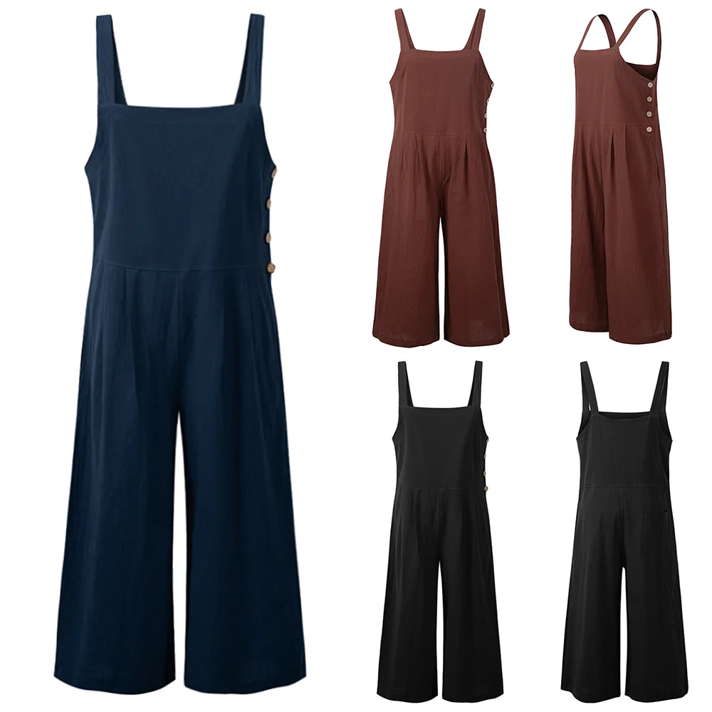 Overalls For Women Jumpsuit Sleeveless Solid Casual 2021 Summer Jumpsuit Female Sling Rompers Ladies Wide Legs Large Size 5XL