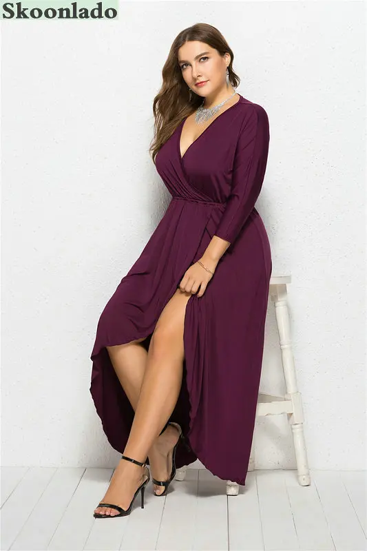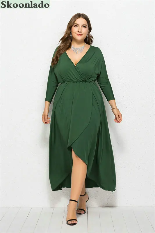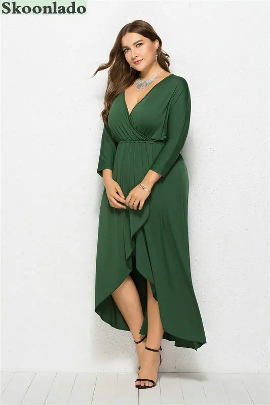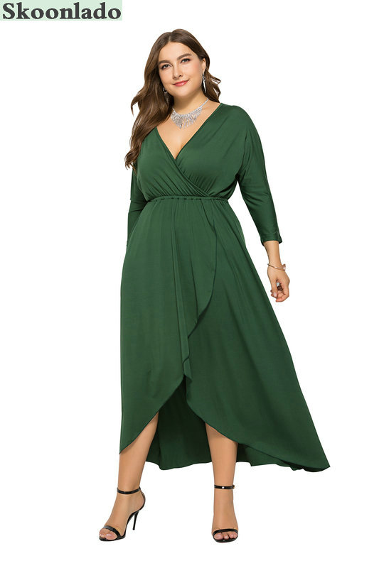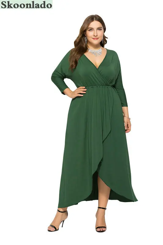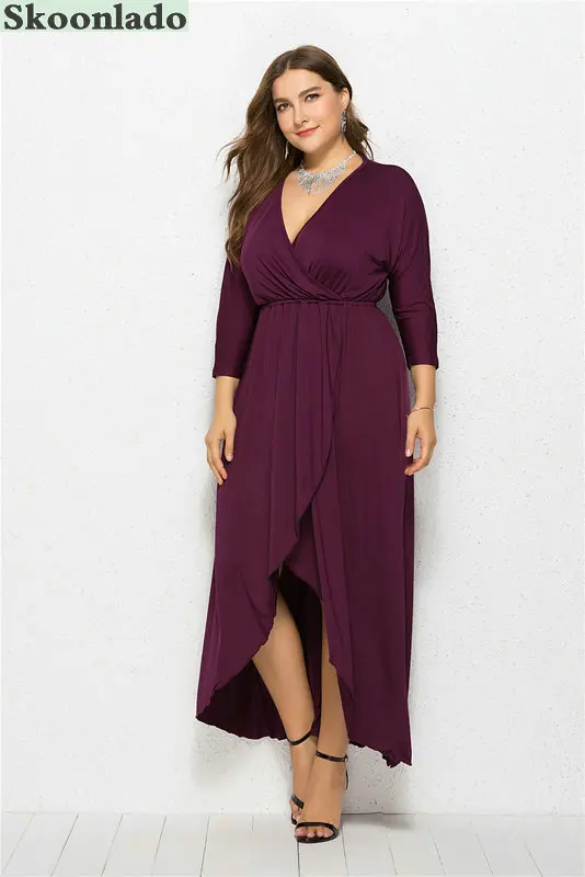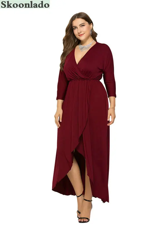 oversize 5xl women classy summer cotton dresses party meeting formal design V neck fashion long dress lady long dresses sleeve