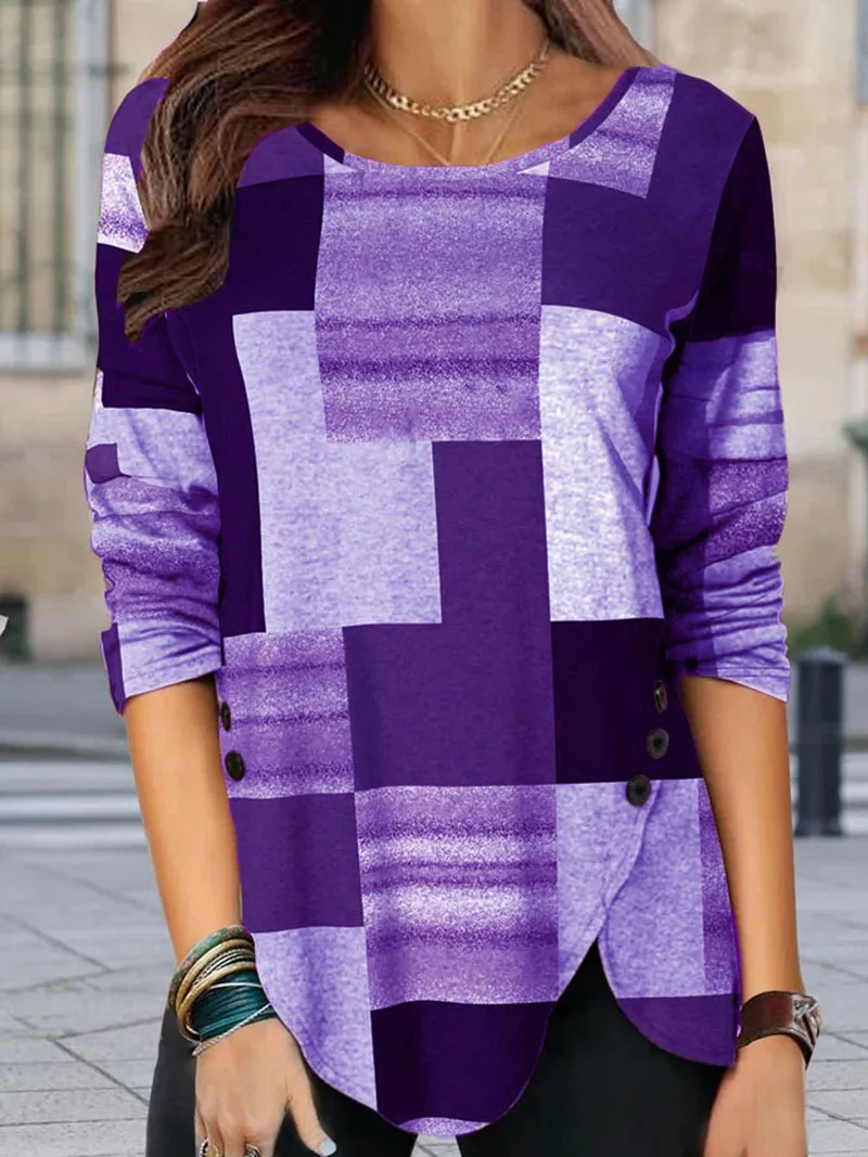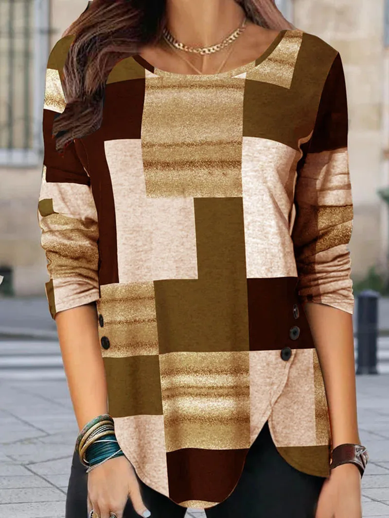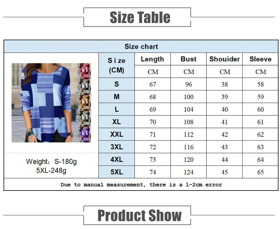 Oversize Pullover Women Autumn Winter Elegant O-Neck Casual Blouse Shirt Print Long Sleeve Loose Size Street Irregular Daily Top
