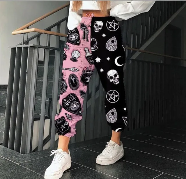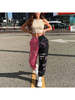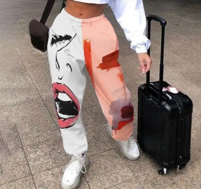 Women PatchworK Pant High Elastic Waist Sweatpant Pocket Trousers Harajuku
