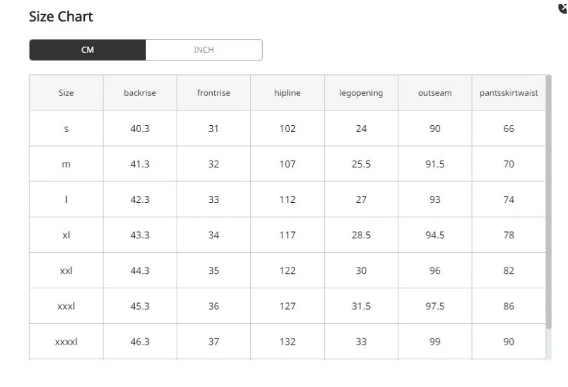Size Hip(cm) Waist (cm)