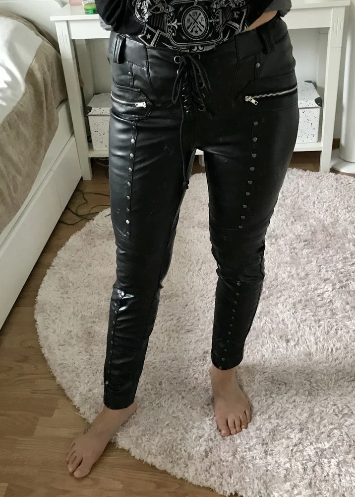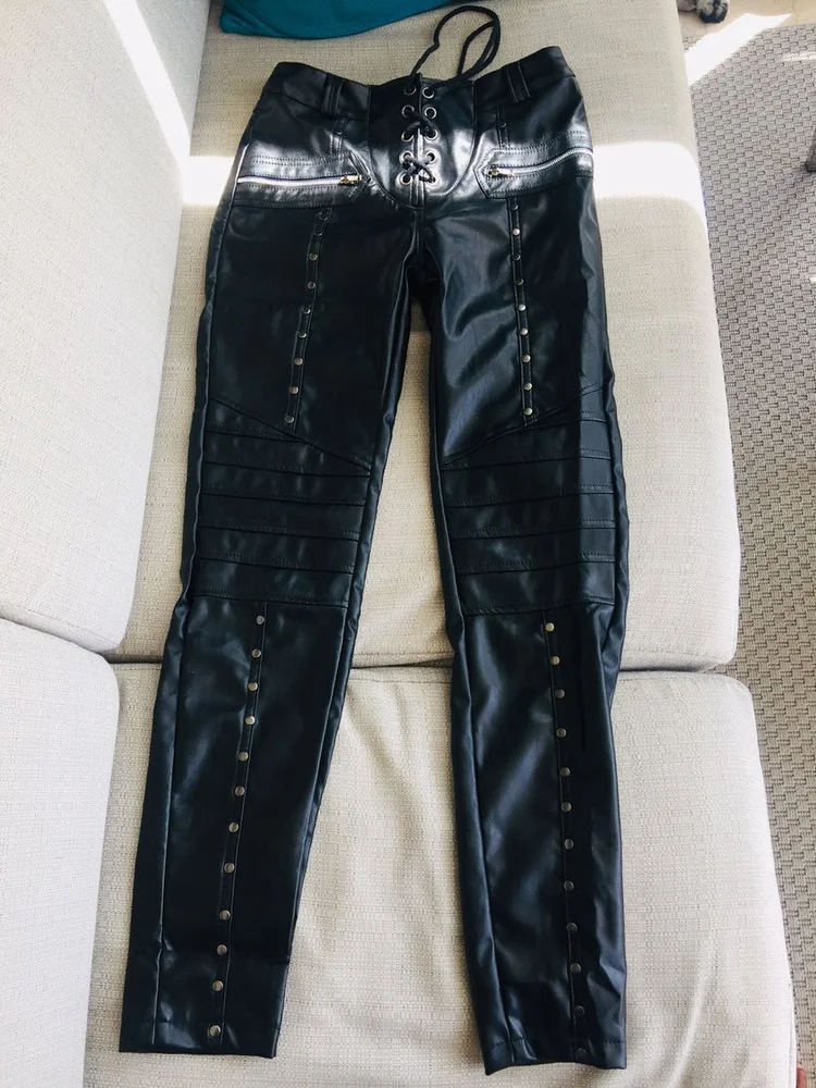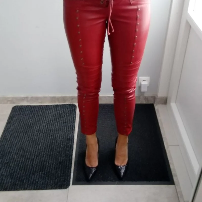 Pants Women Faux Leather Slim Fit Pant Spring Autumn Streetwear Middle Waist Motorcycle Long Legging Skinny Pants Trousers Black