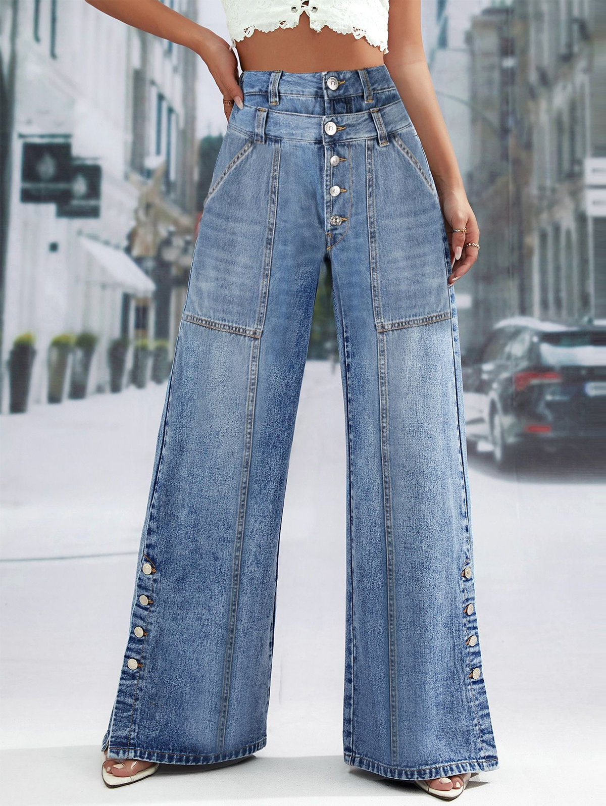 High Waist Wide Leg Jeans Women Fashion High Waist Button Wide Leg Long Pants Loose Slimming Straight Trendy Long Pants