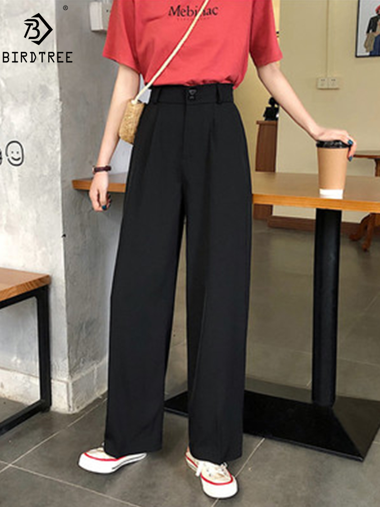 Women Wide Leg Pants 2022 Summer Thin Fabric Classic High Waist Pockets Button Fly Long Palazzo Trousers Korean Casual Bottoms