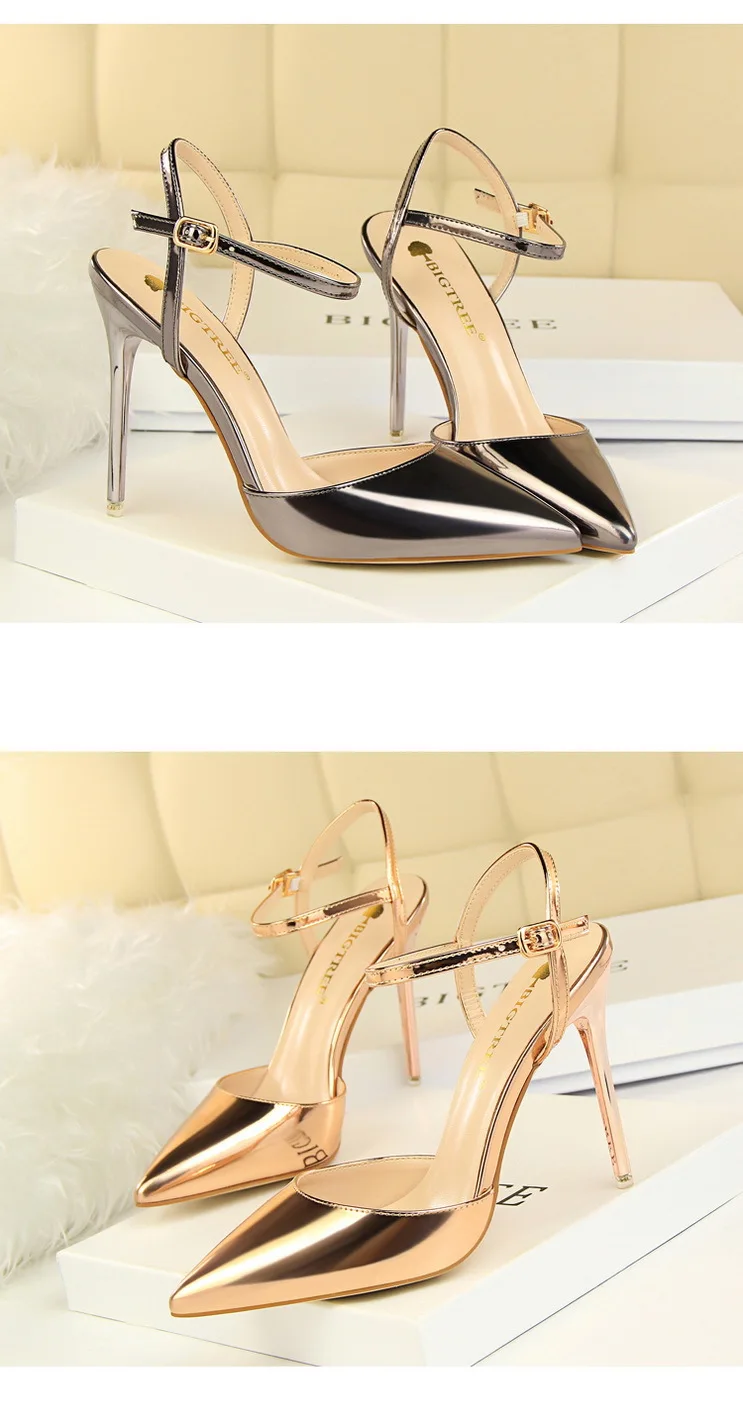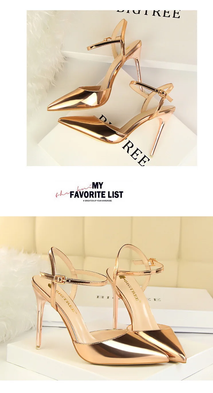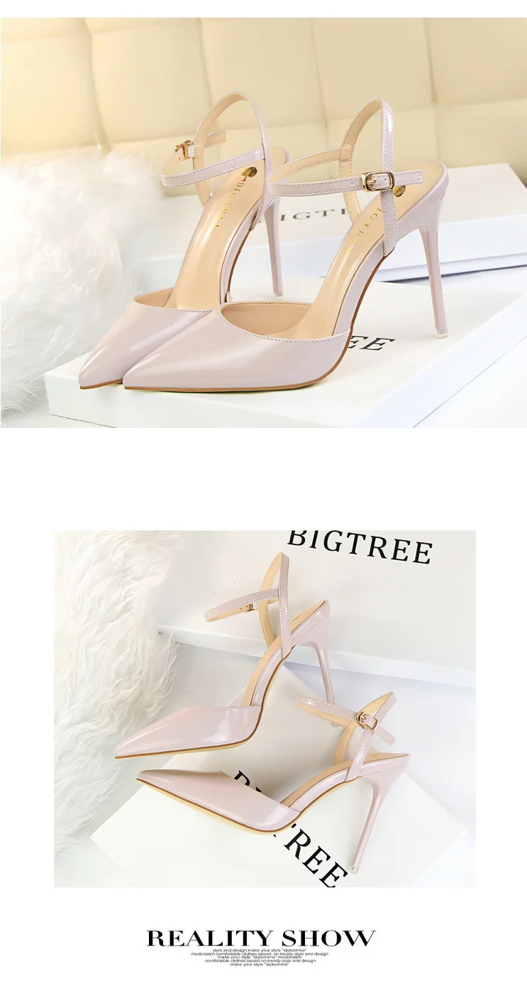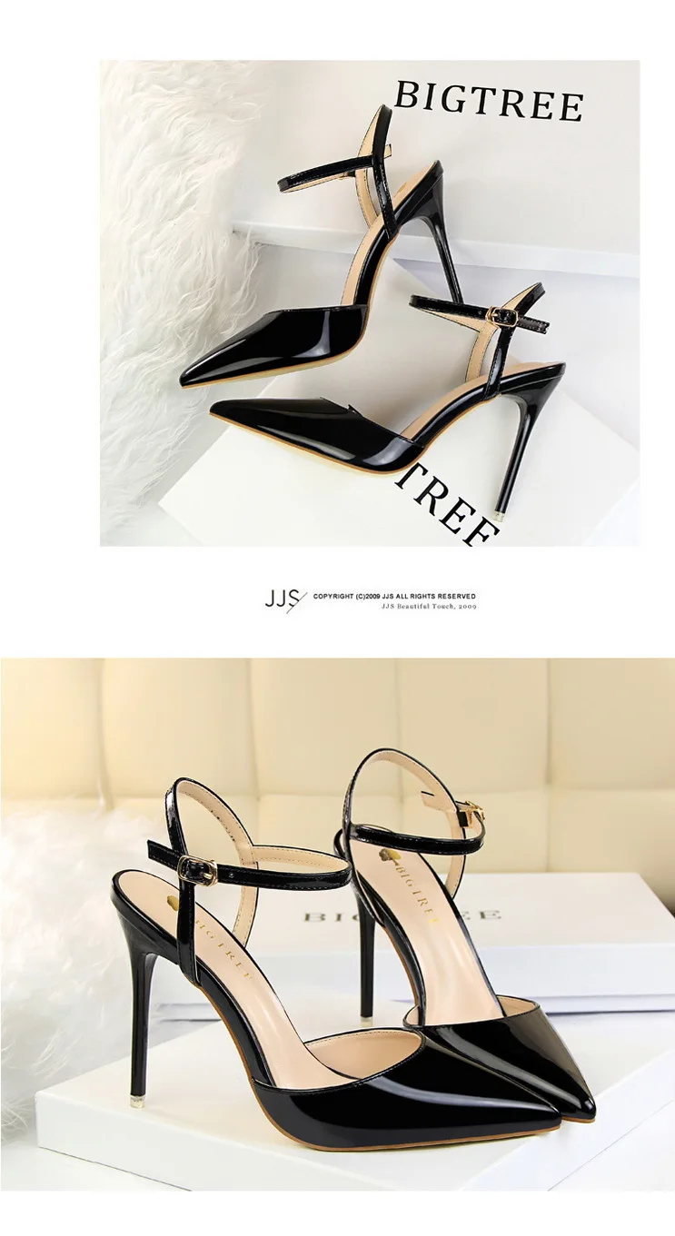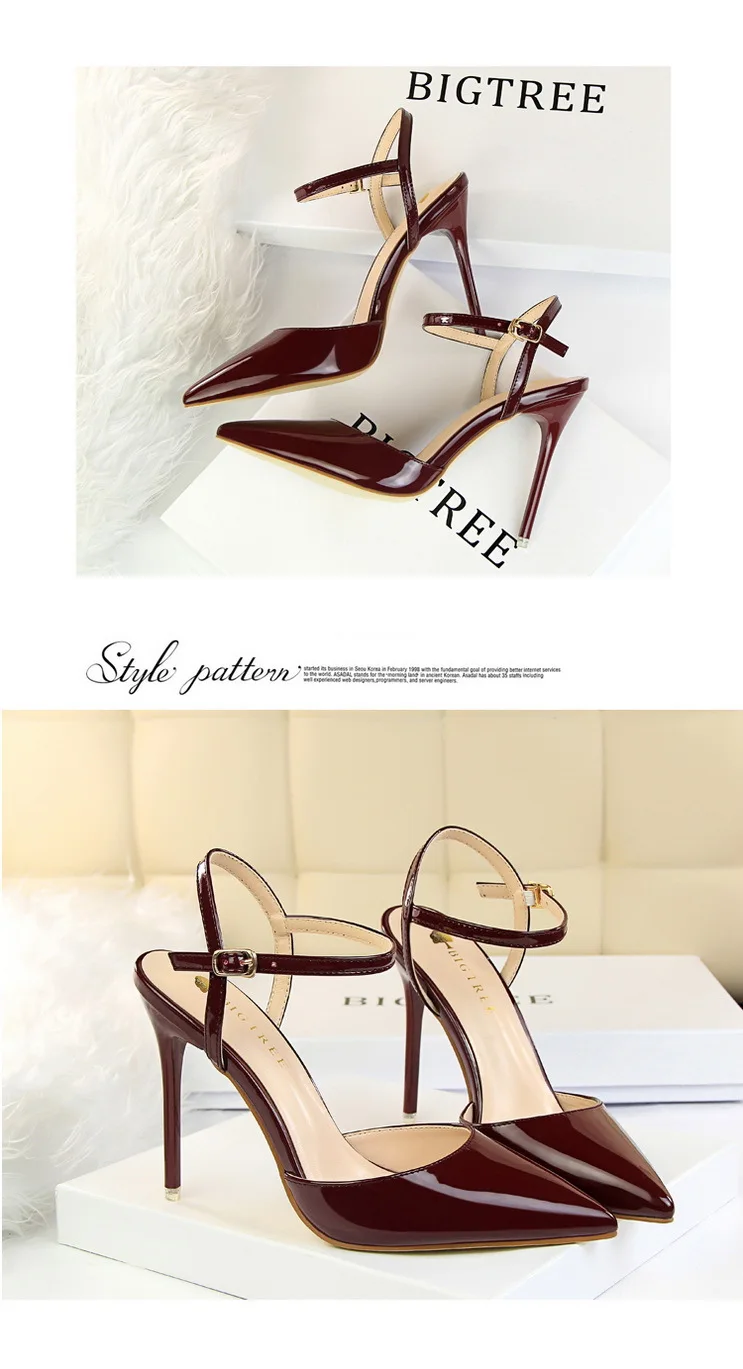 Party Shoes Simple Thin Heel Pointed Patent Leather Sexy Nightclub Shoes Slimming Women Sandal High Heel Wedding Shoes