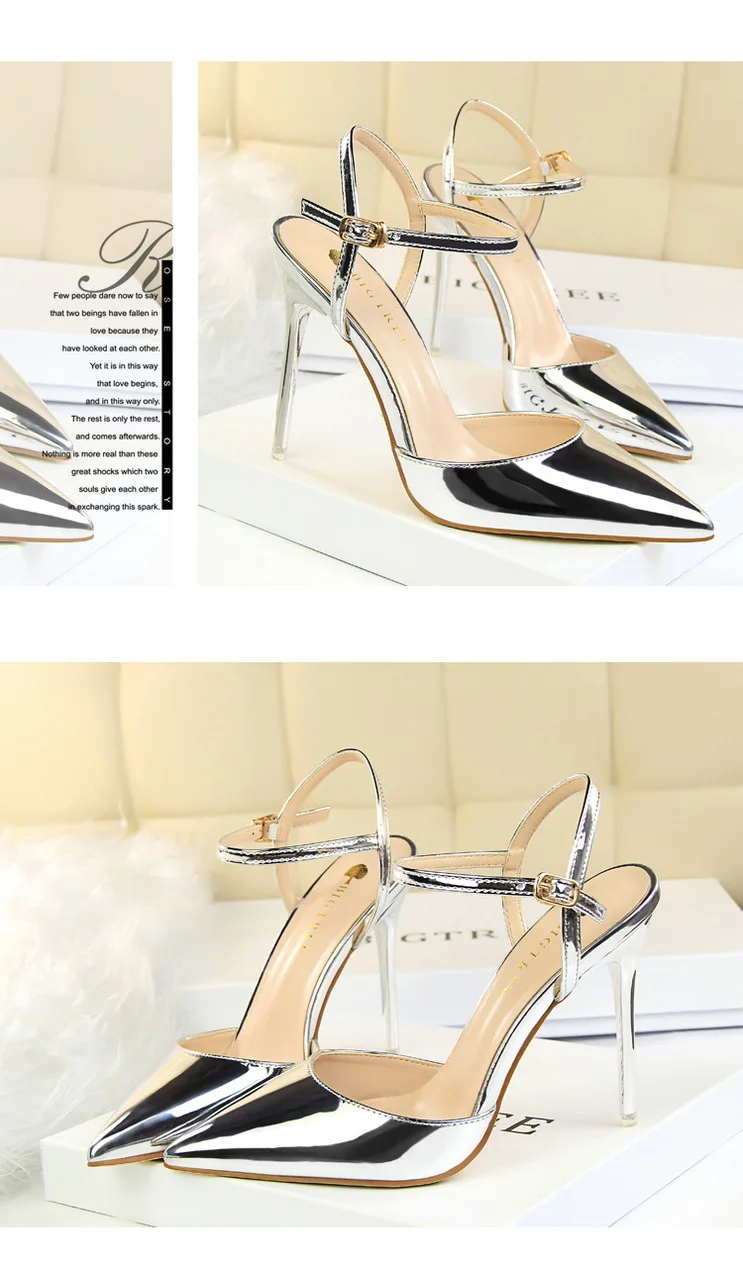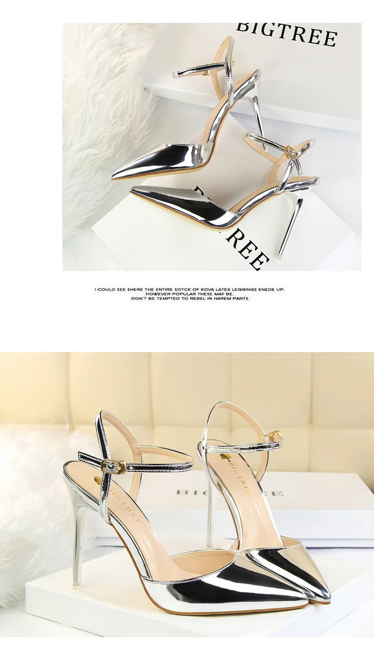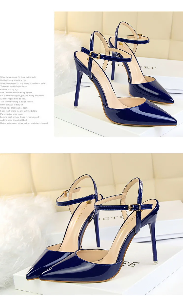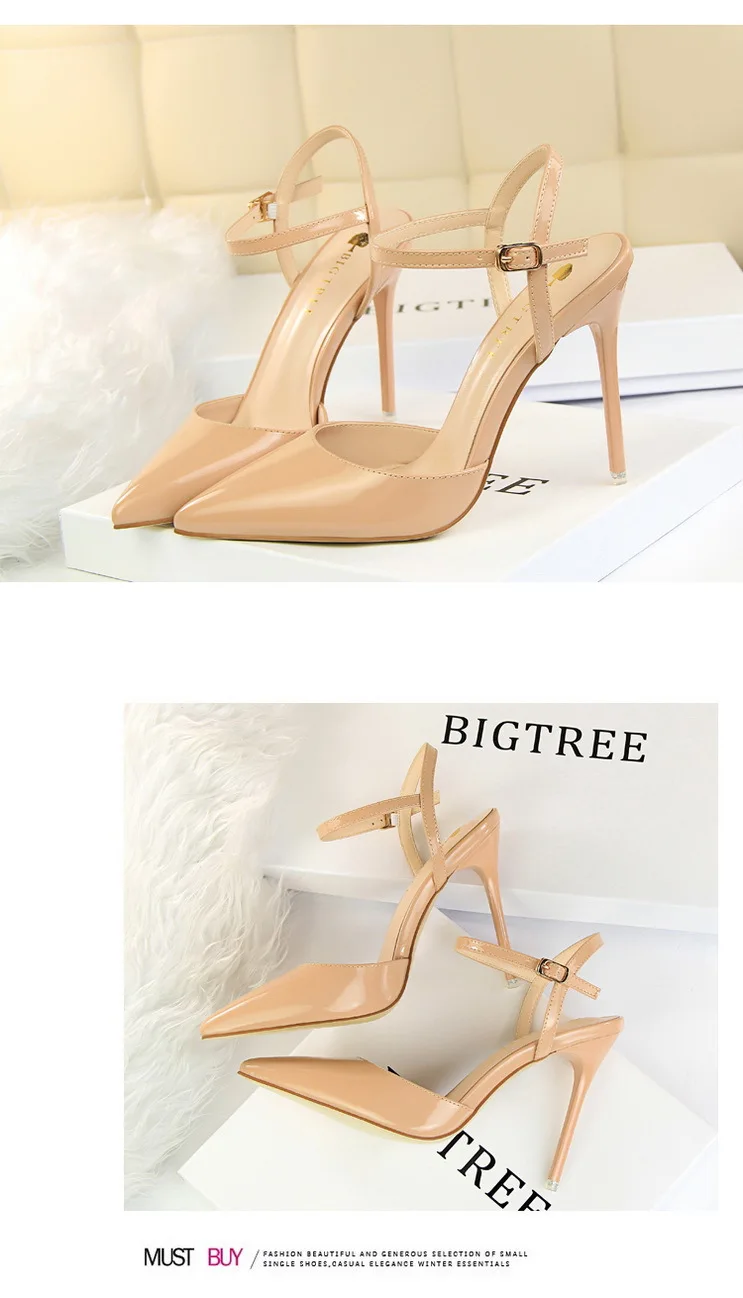 Party Shoes Simple Thin Heel Pointed Patent Leather Sexy Nightclub Shoes Slimming Women Sandal High Heel Wedding Shoes