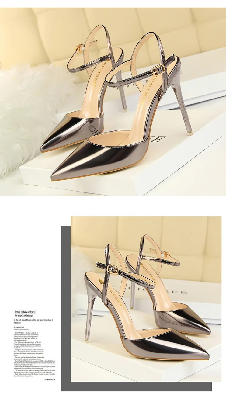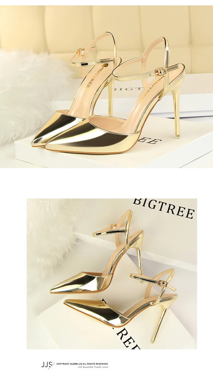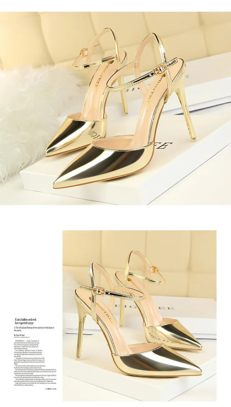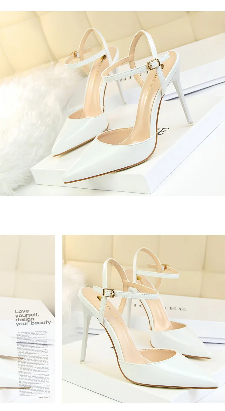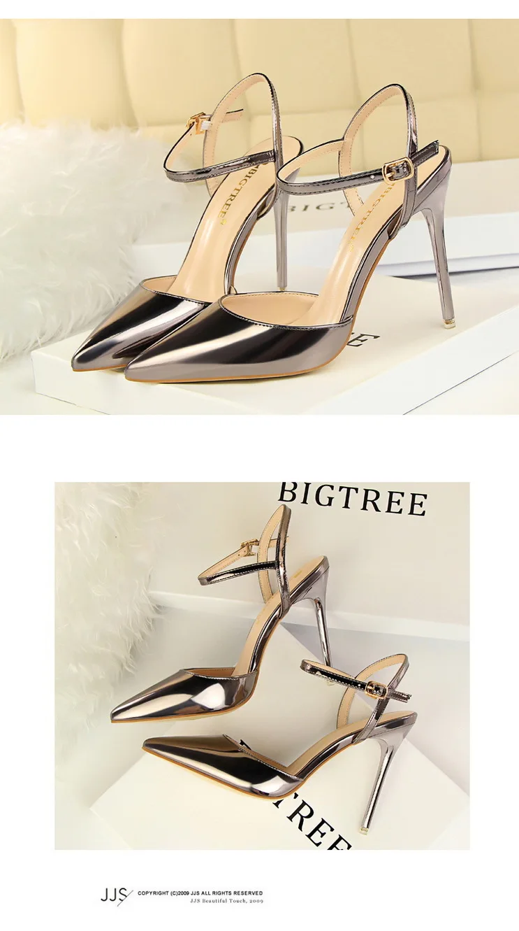 Party Shoes Simple Thin Heel Pointed Patent Leather Sexy Nightclub Shoes Slimming Women Sandal High Heel Wedding Shoes