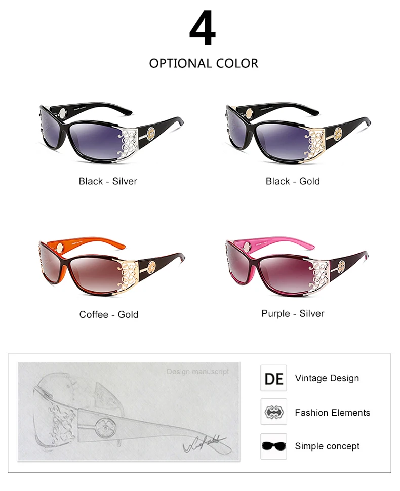 Parzin Polarized Sunglasses Women Hollow Frame Sun Glasses  Designer Female Ladies Shades Sunglases  Eyewear Black With Case