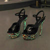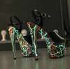 Patent Leather Stiletto High Heels Womens Platform Sandals Super High Pumps Fluorescence Punk Sandals Pole Dancing Shoes Women