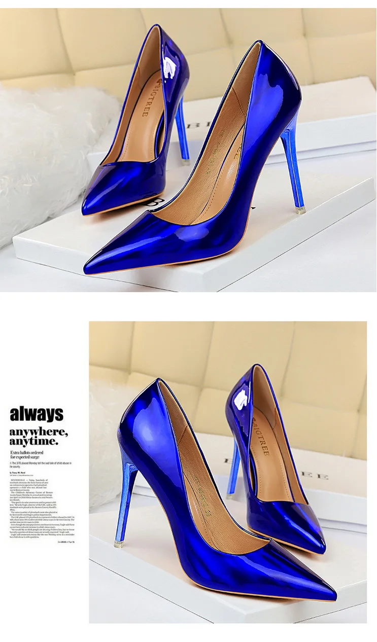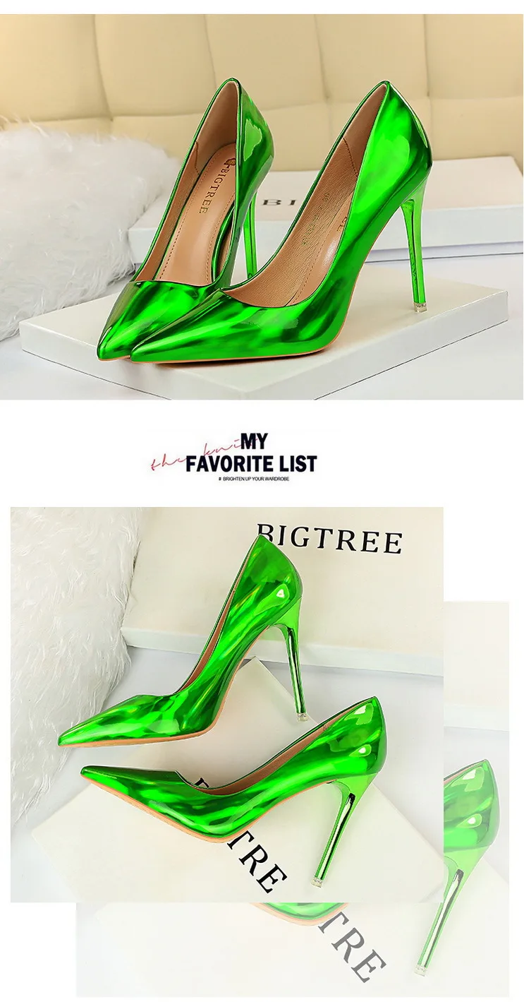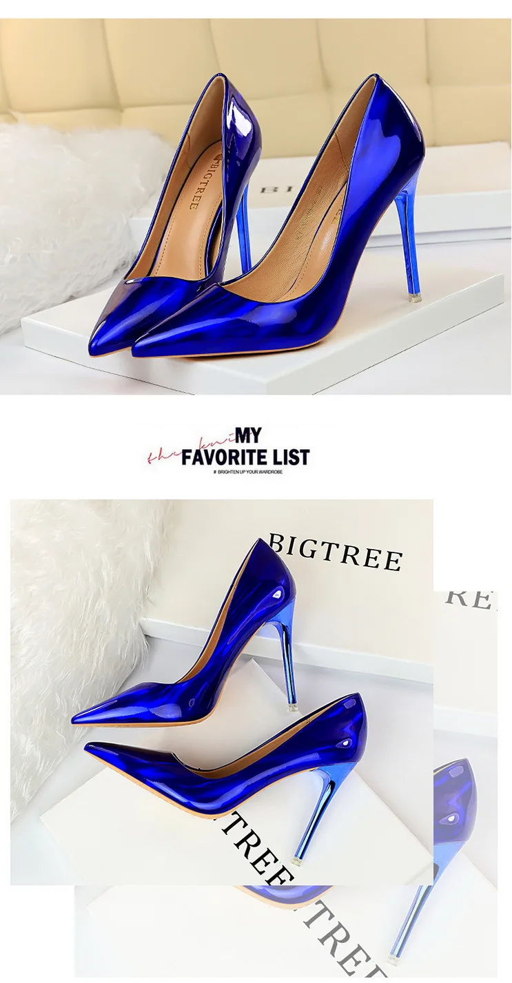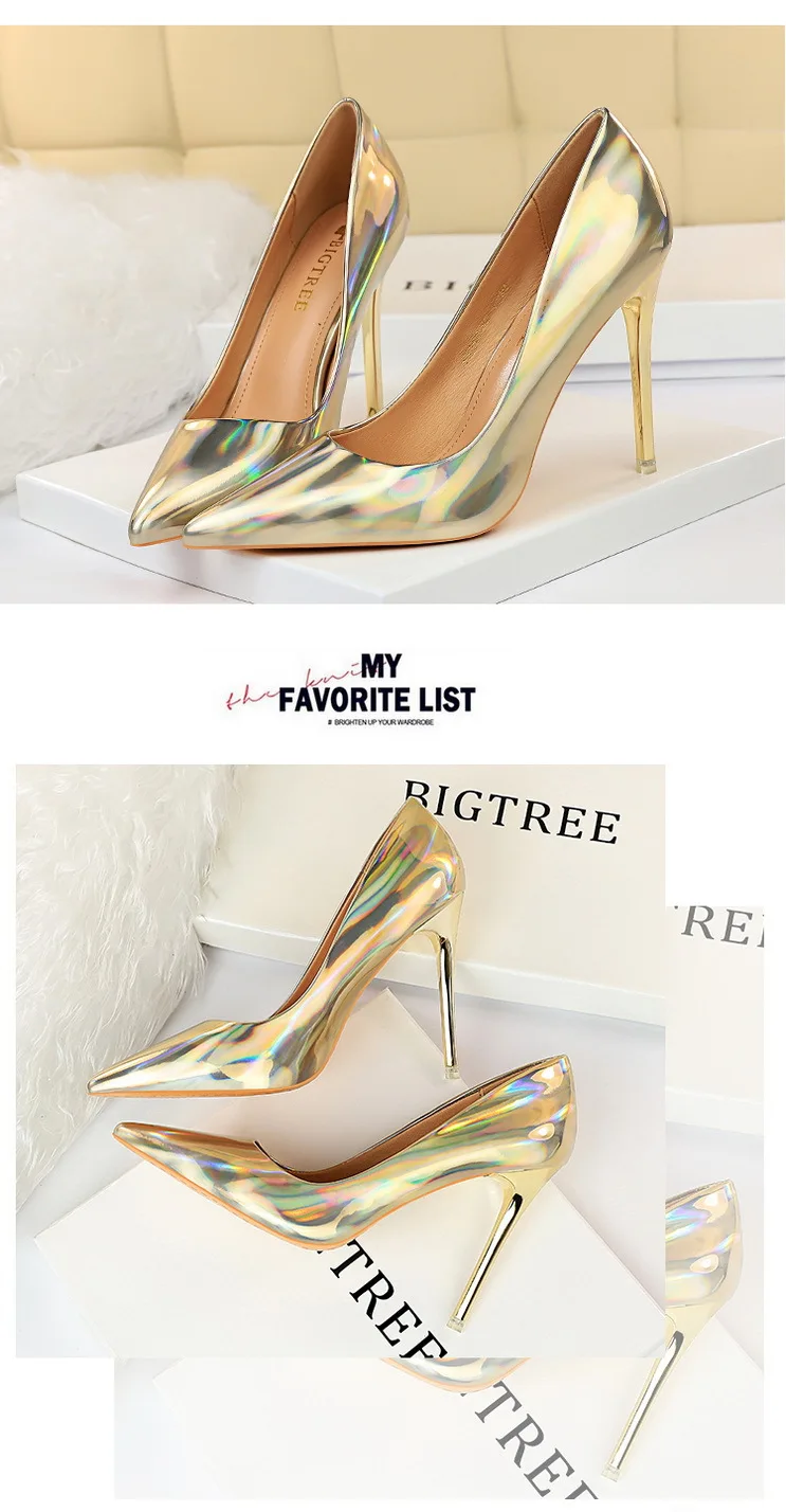 Patent Leather Woman Pumps BIGTREE Shoes New High Heels Shoes Sexy Women Heels Pointed Toe Women Basic Pump Heels Plus Size 43