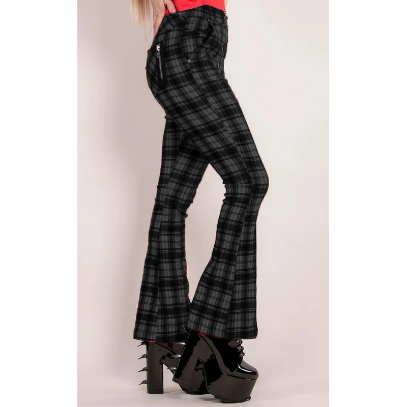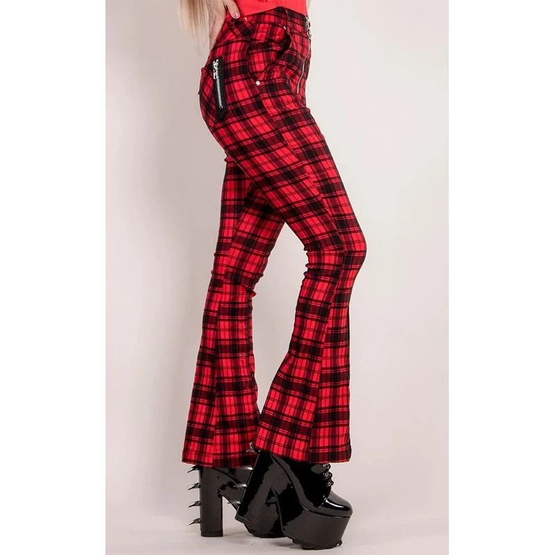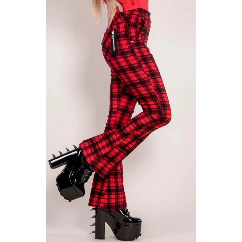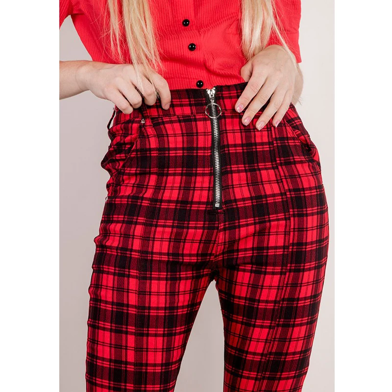 Plaid Pants Women Skinny High Waist Gothic Punk Flare Pants Spring Summer Streetwear Woman Zipper Y2K Long Bottoms Trousers 2021