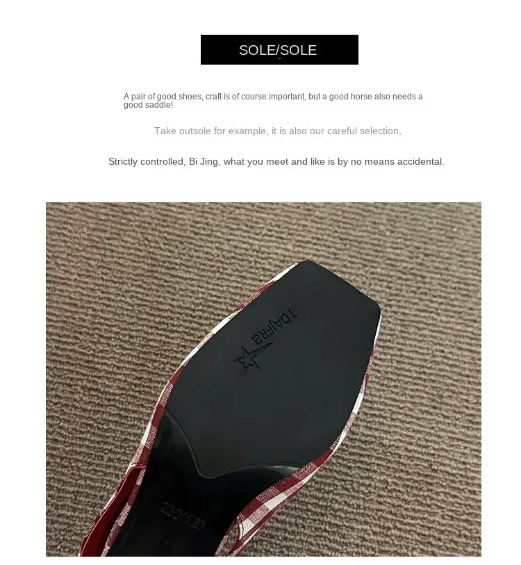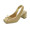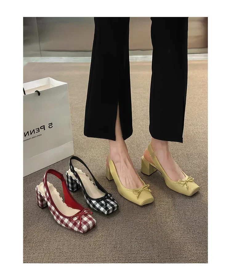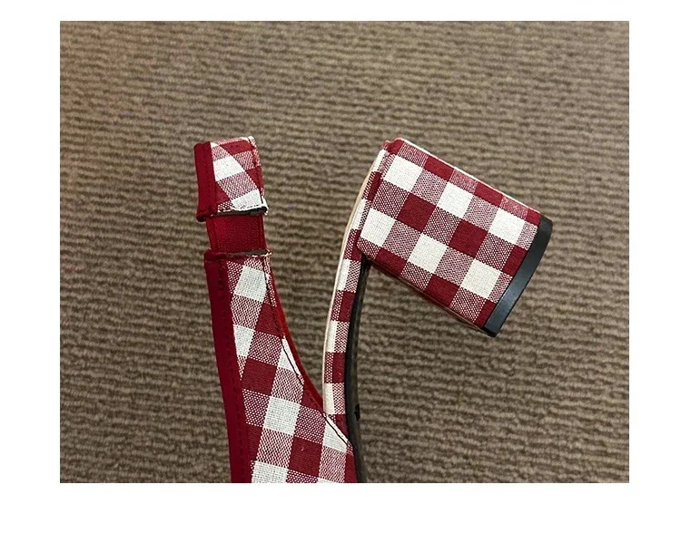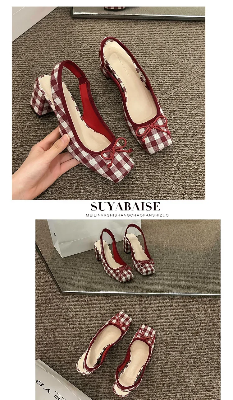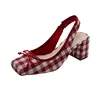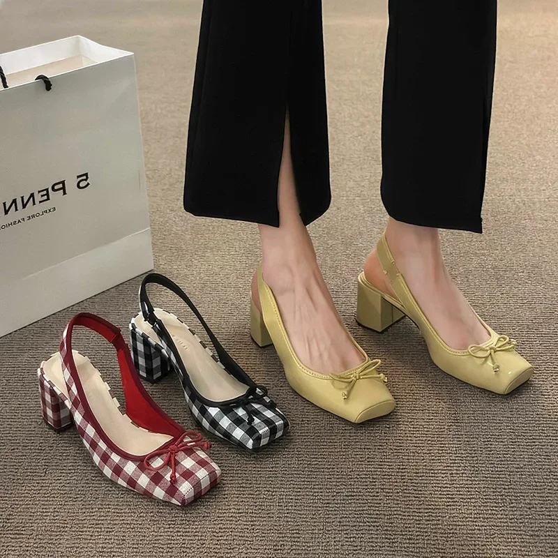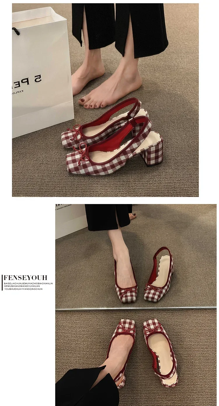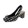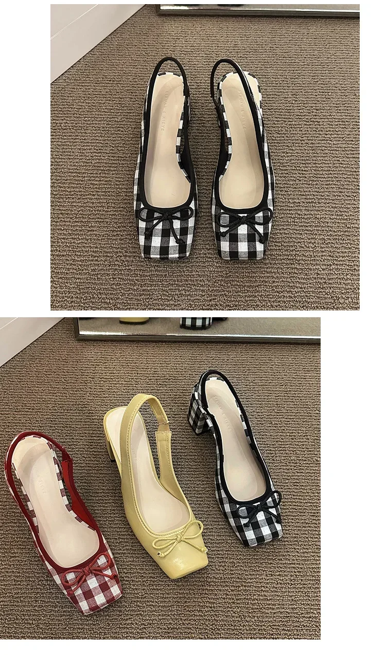 Plaid Square Toe Thick Heel Women Shoes 2023 New Bowknot Casual High Heel Sandals for Women Zapatos De Mujer Sandalias
