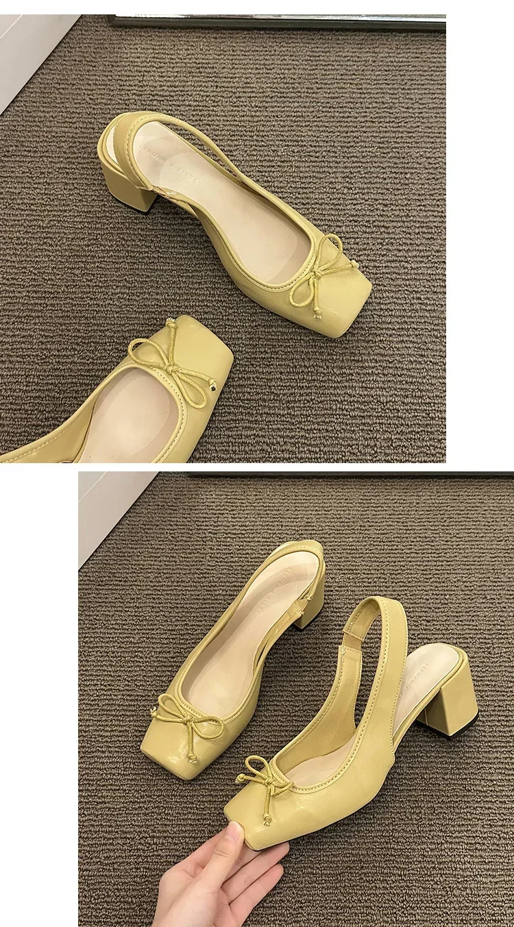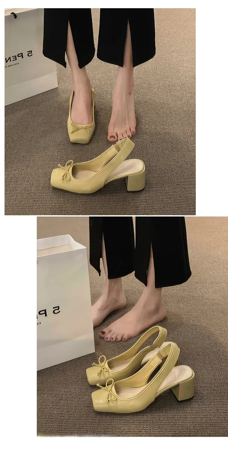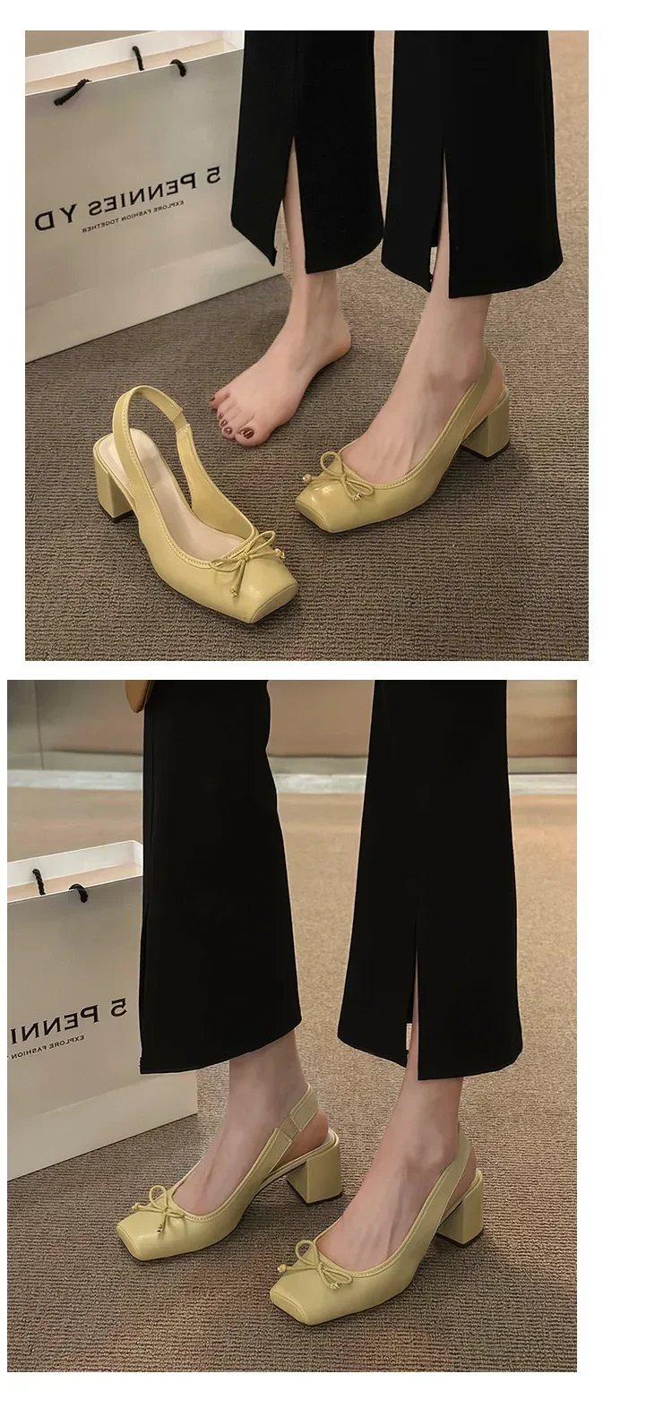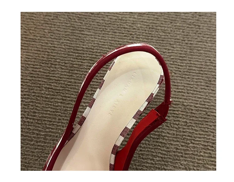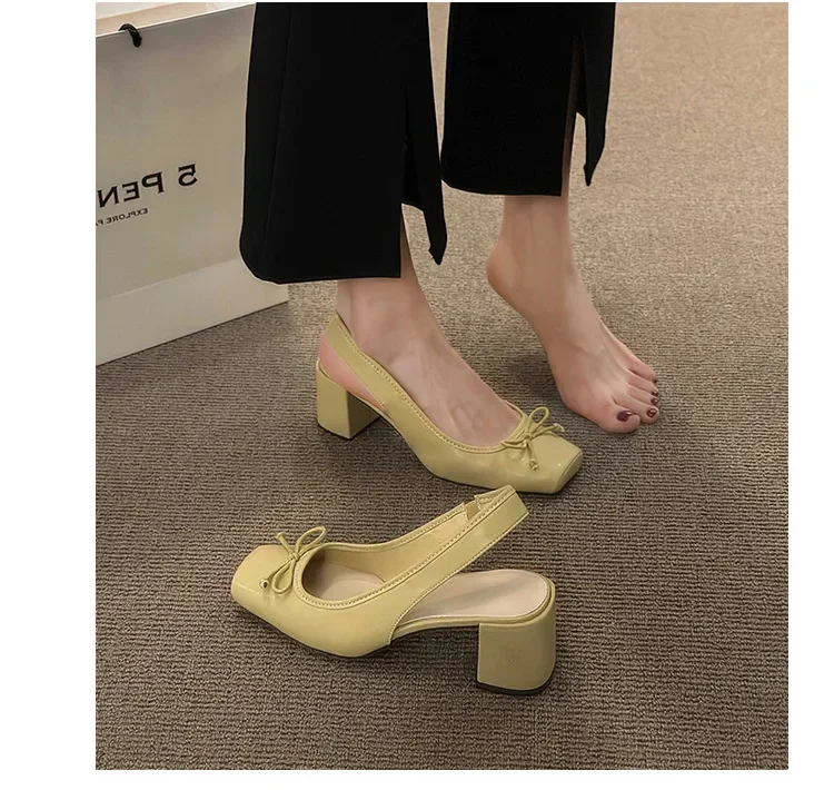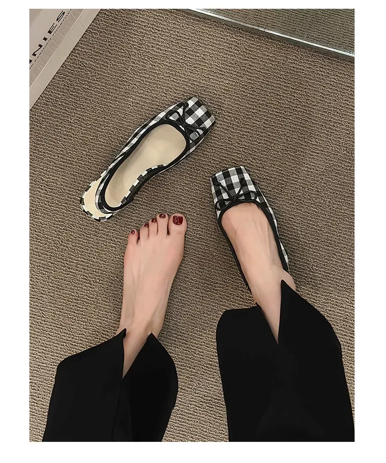 Plaid Square Toe Thick Heel Women Shoes 2023 New Bowknot Casual High Heel Sandals for Women Zapatos De Mujer Sandalias