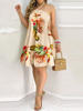 Plants Print Halter Backless Casual Dress Women Strapless Summer Dress