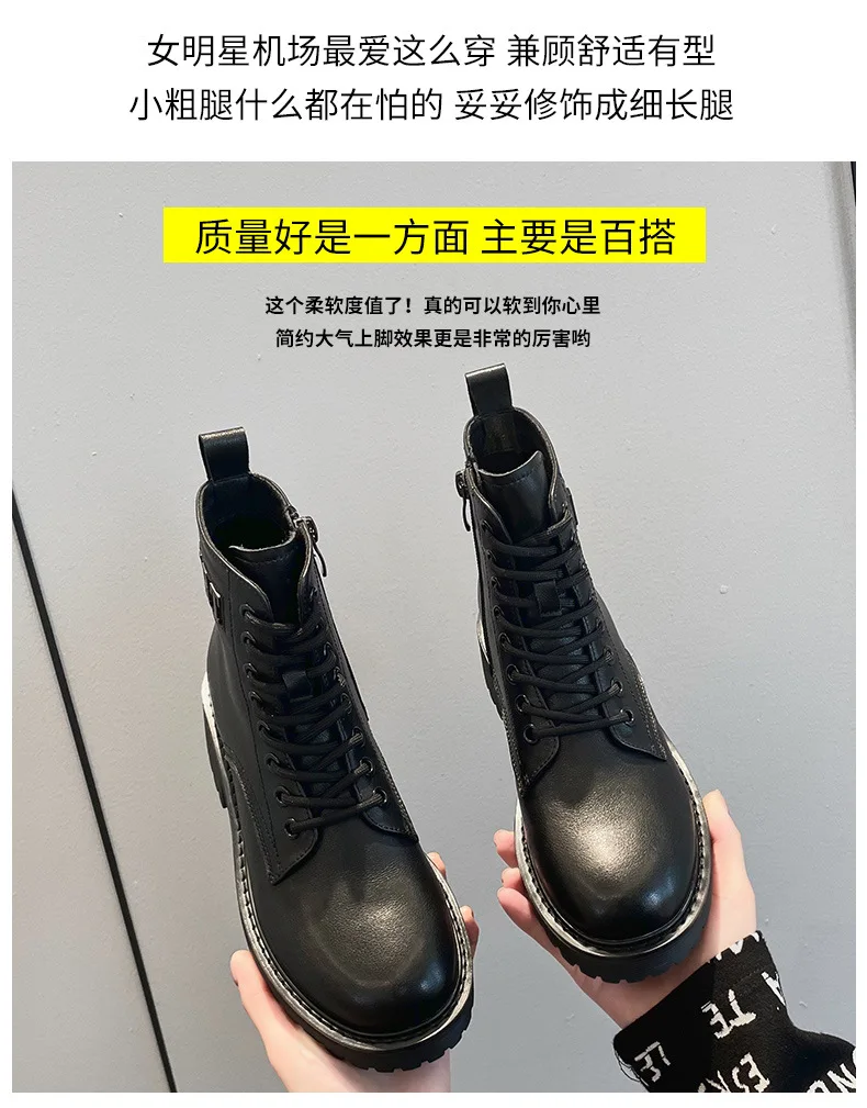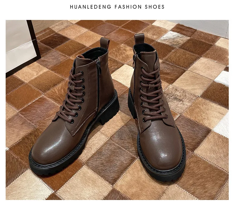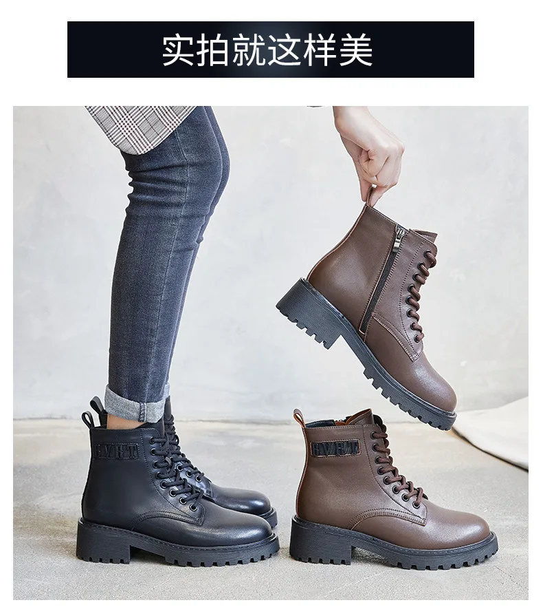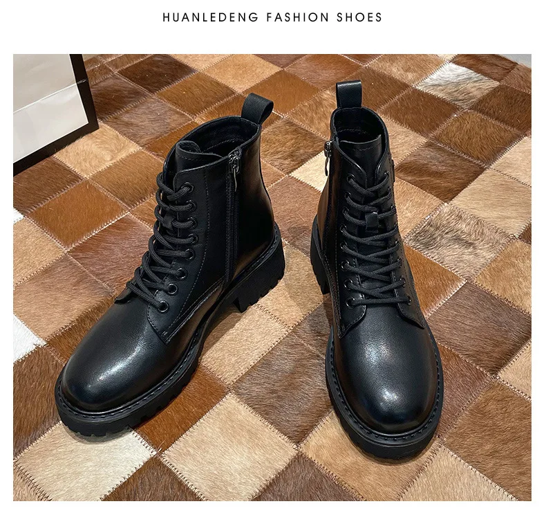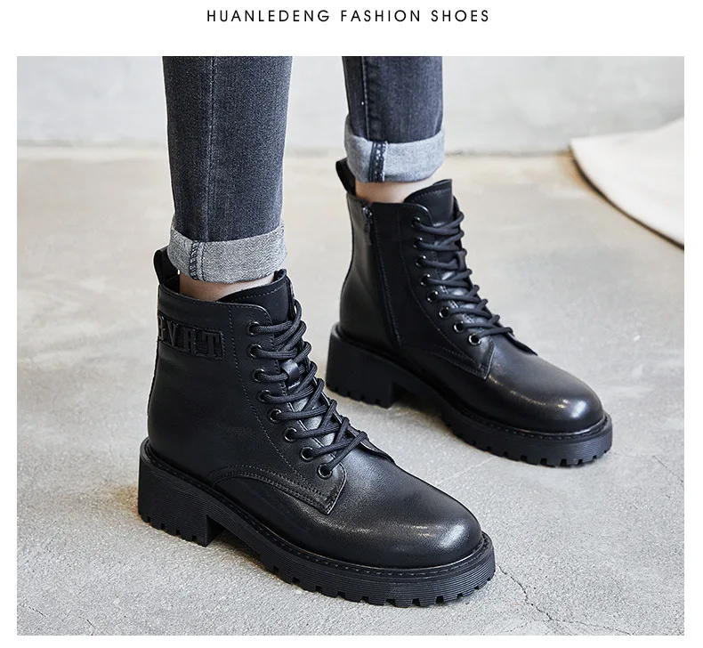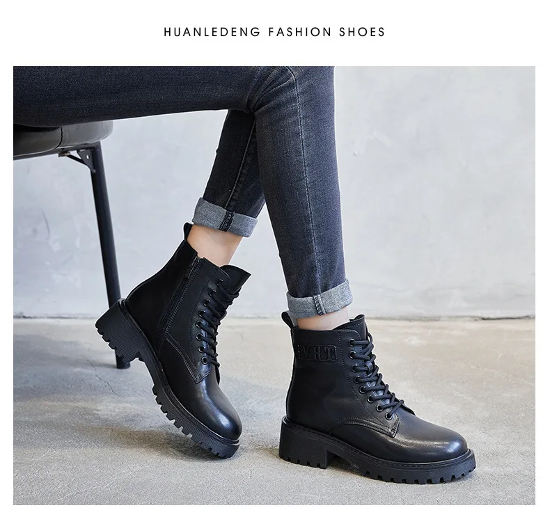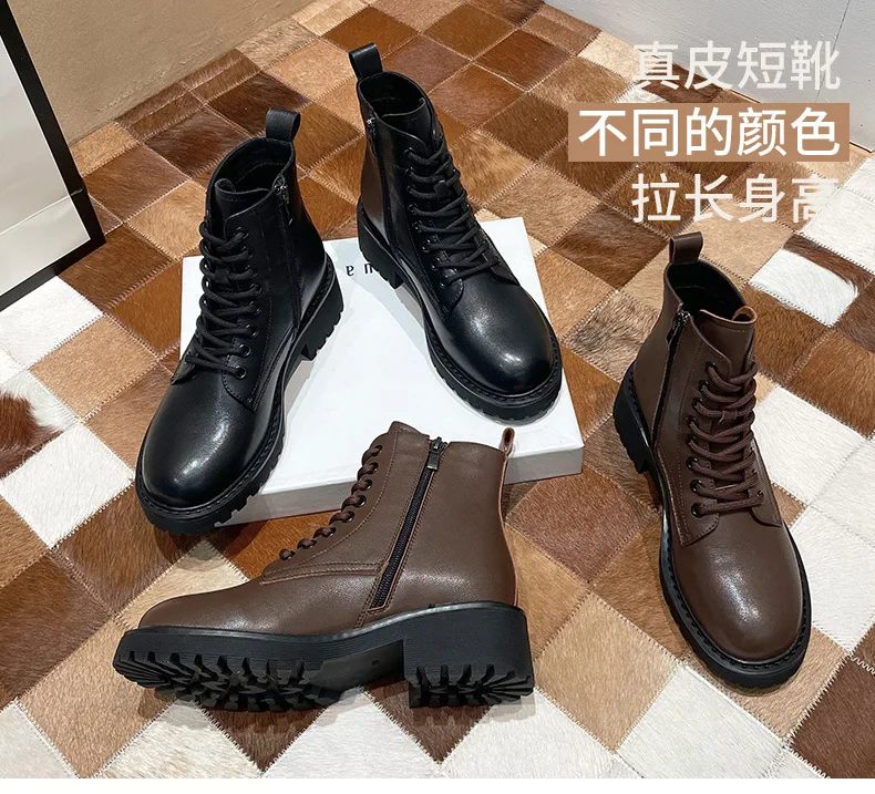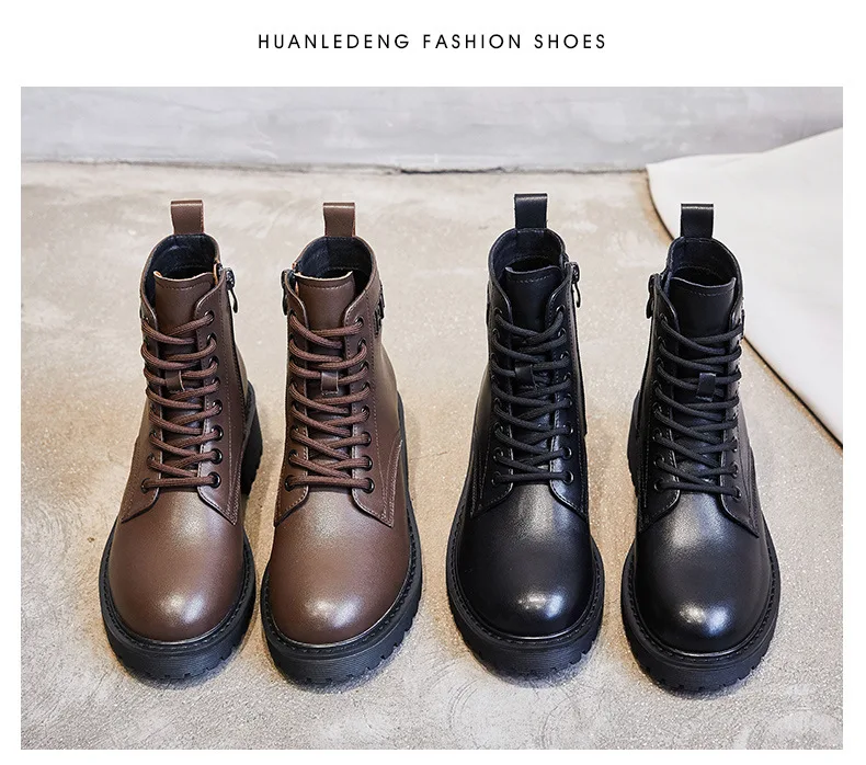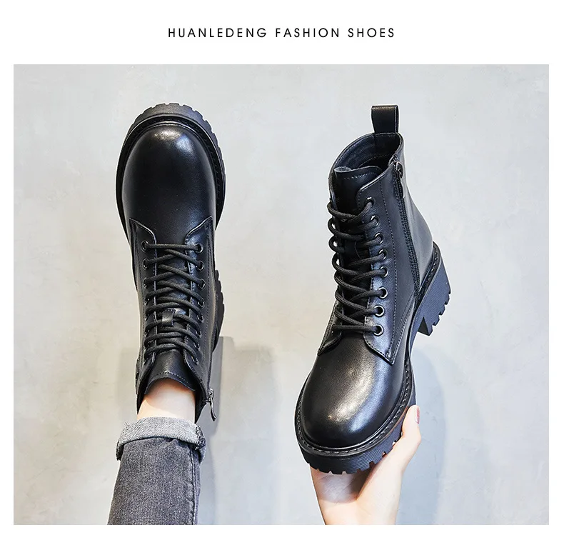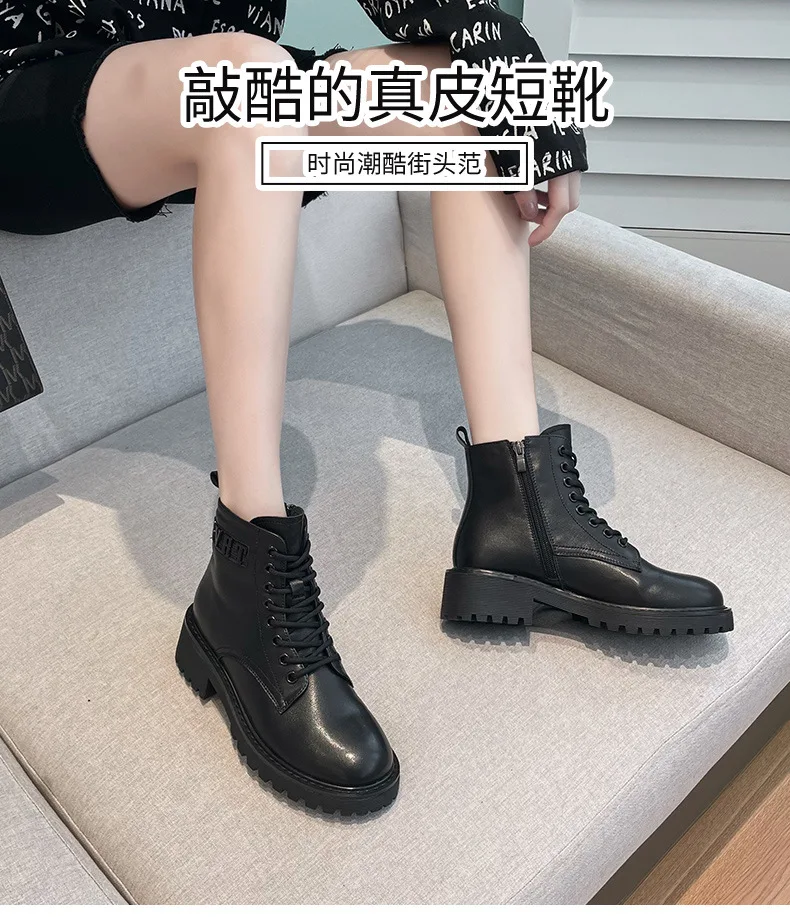 Platform 1 Boots Women Genuine Leather Shoes 2021 Fashion Side Zipper Ankle Boot Autumn Handmade Ladies Booties Botas Mujer