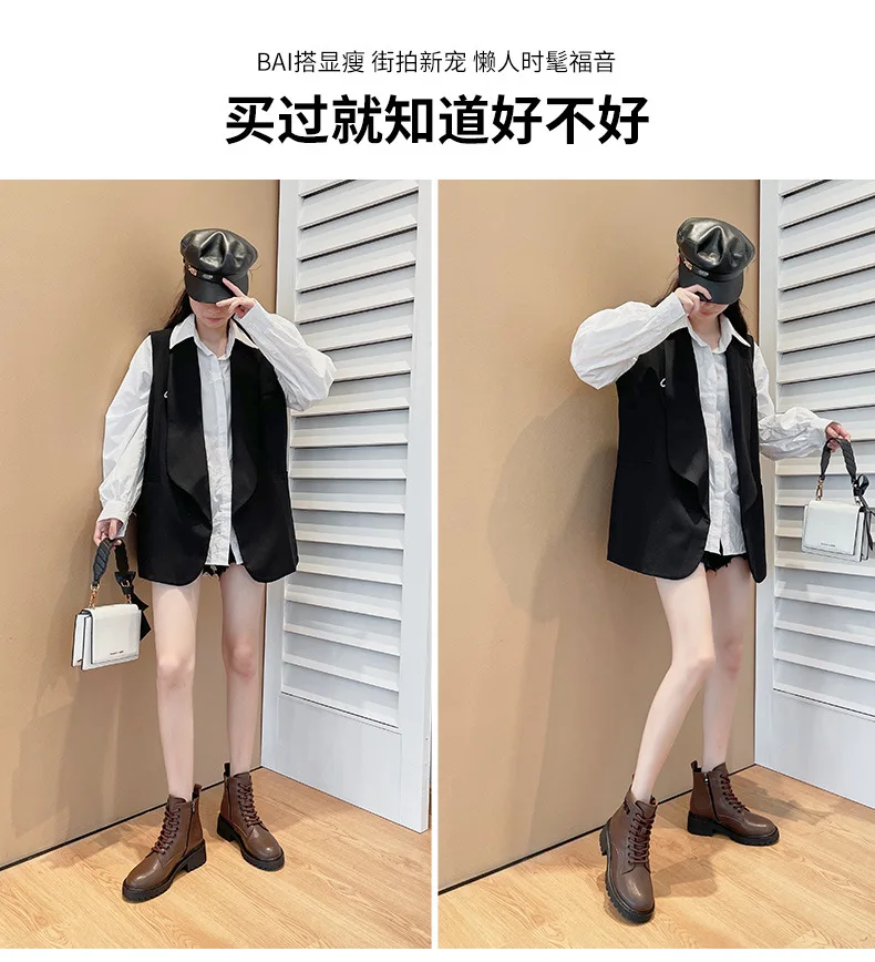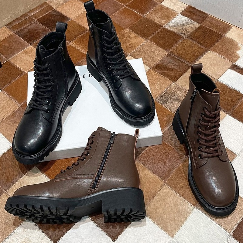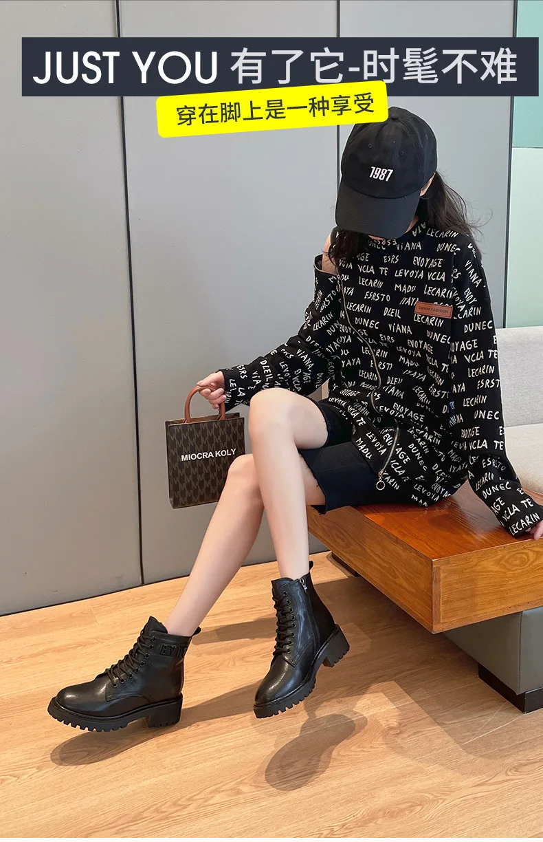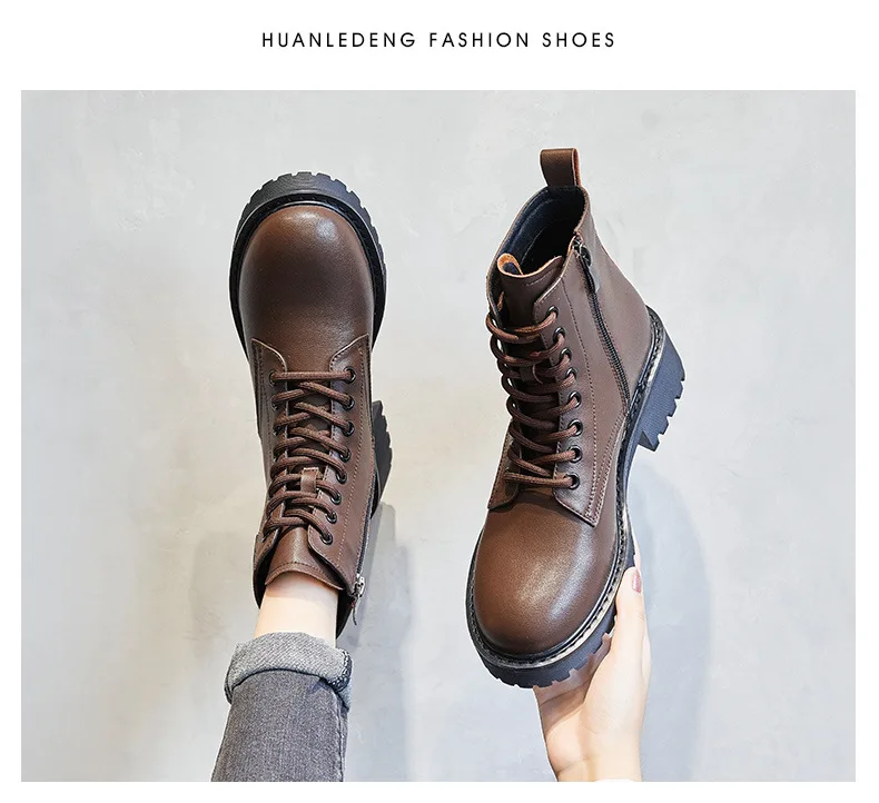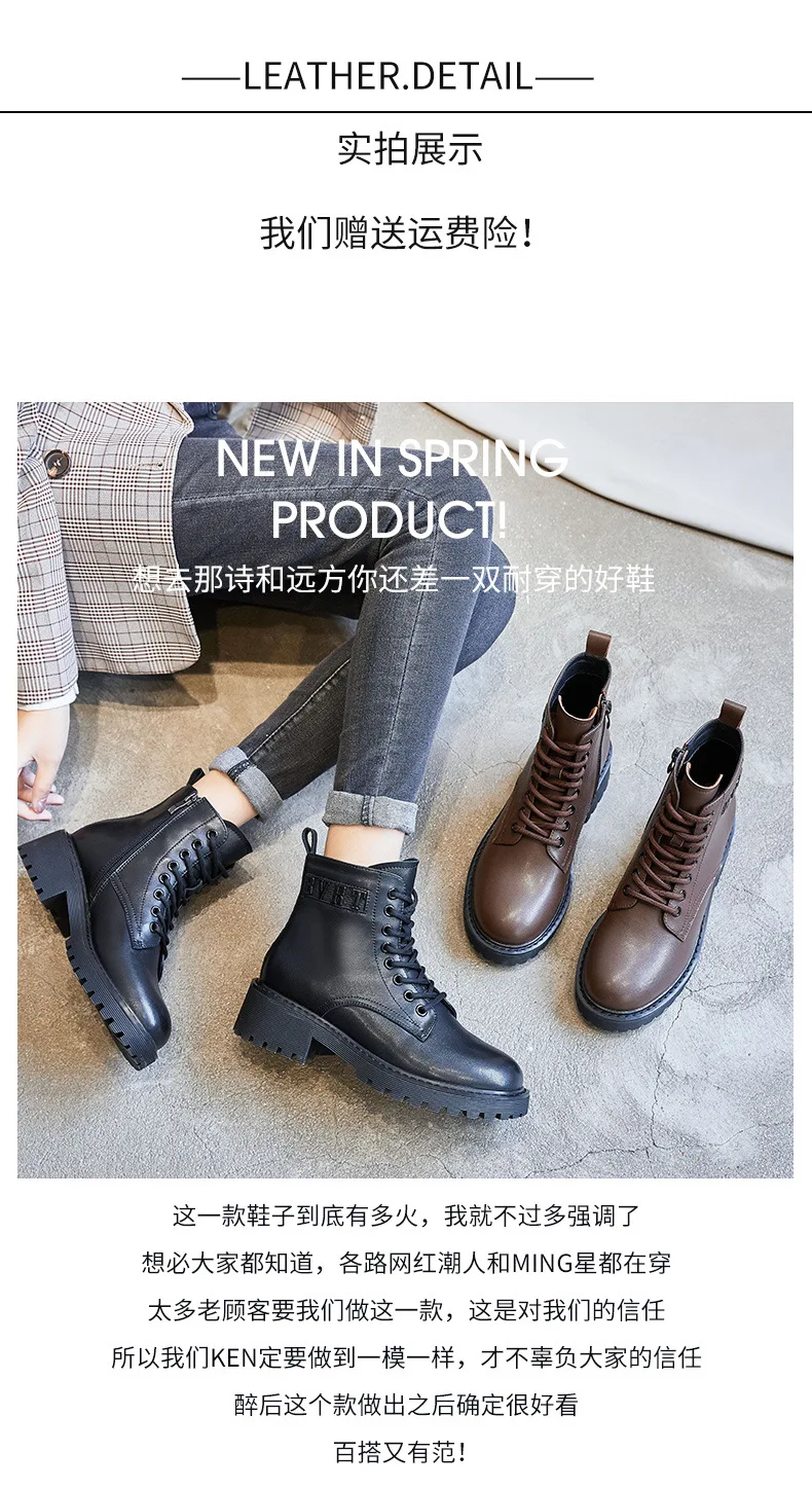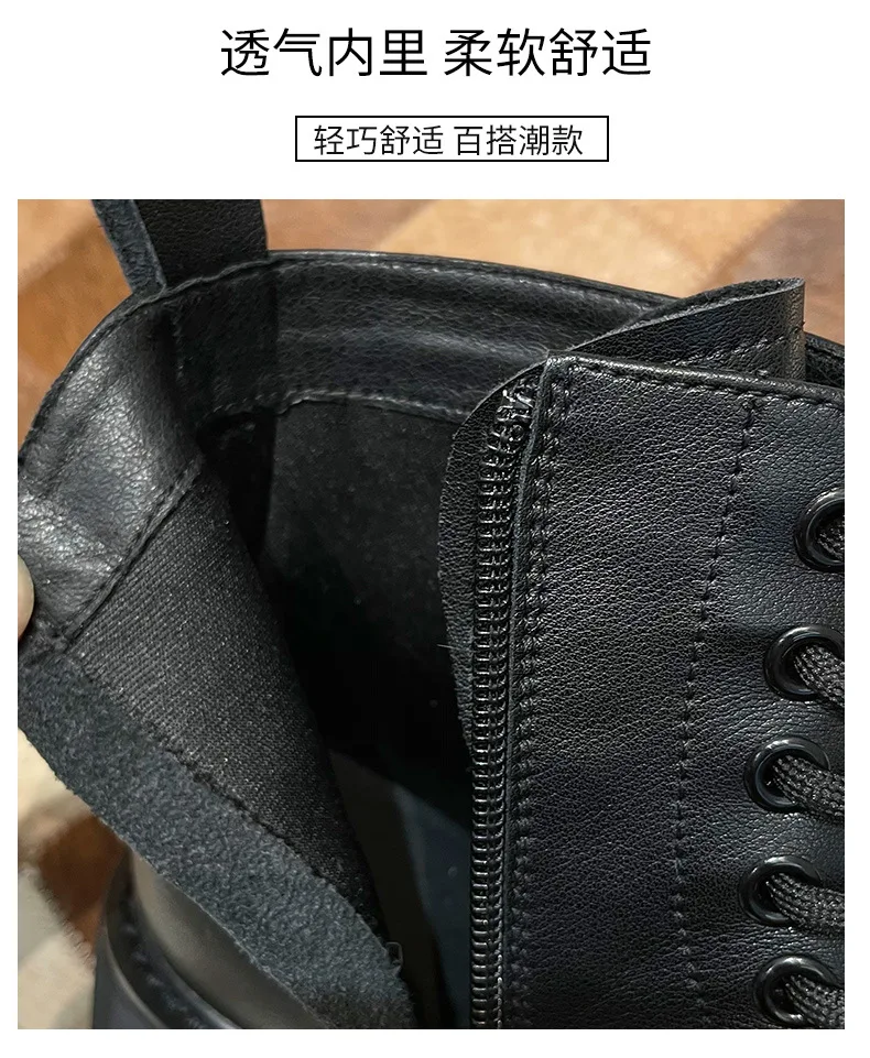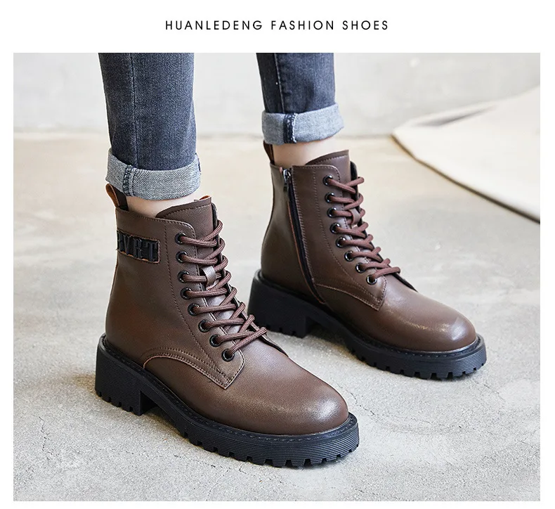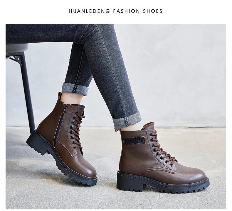 Platform 1 Boots Women Genuine Leather Shoes 2021 Fashion Side Zipper Ankle Boot Autumn Handmade Ladies Booties Botas Mujer