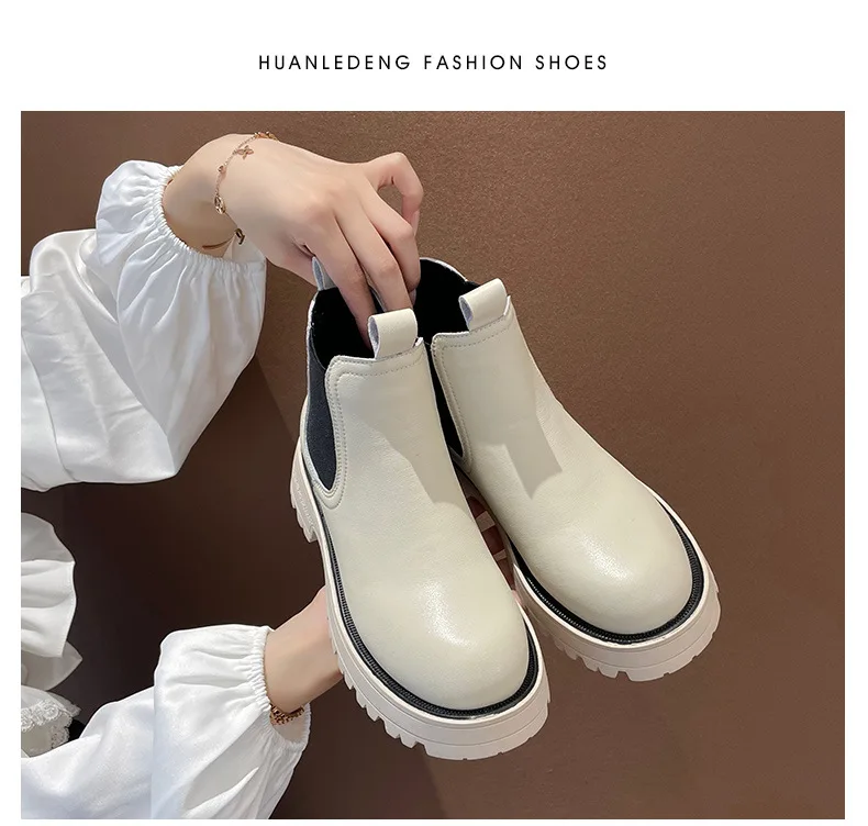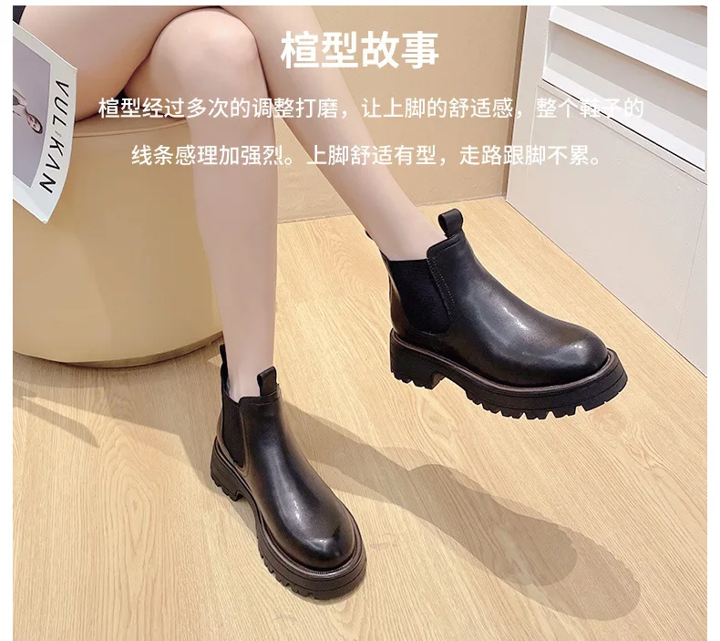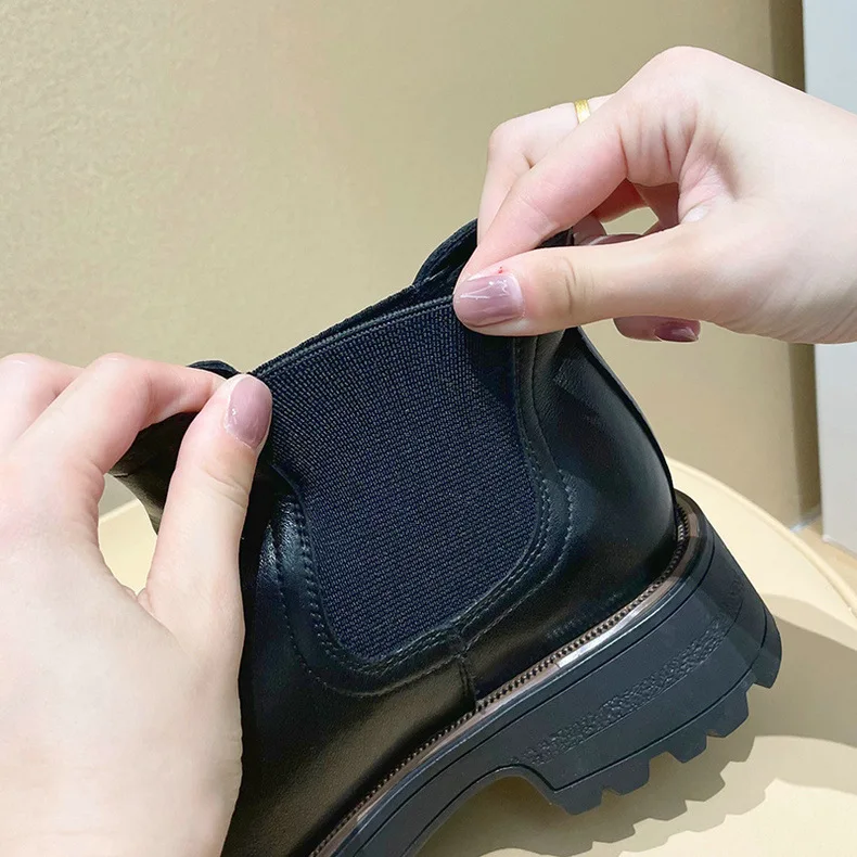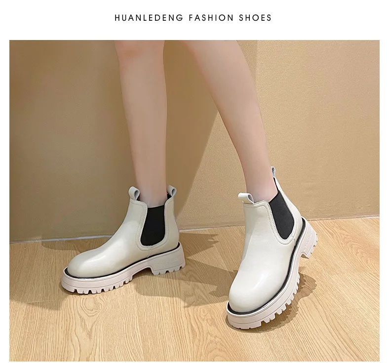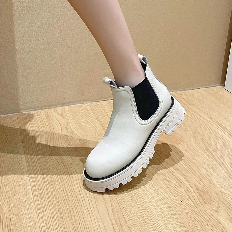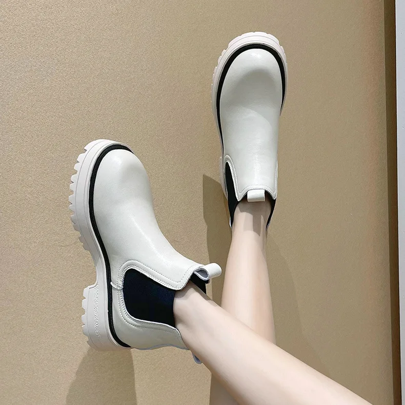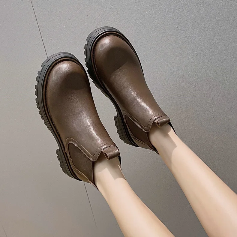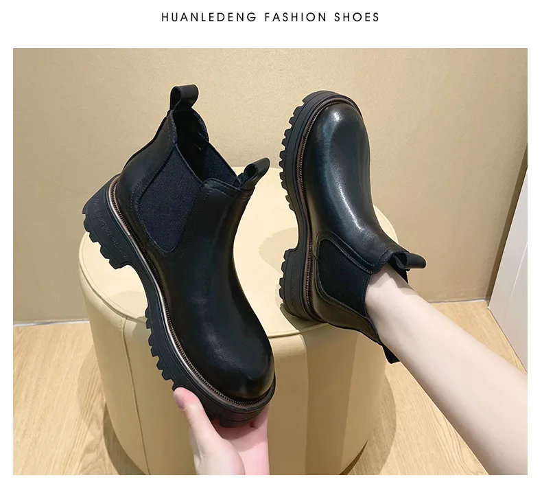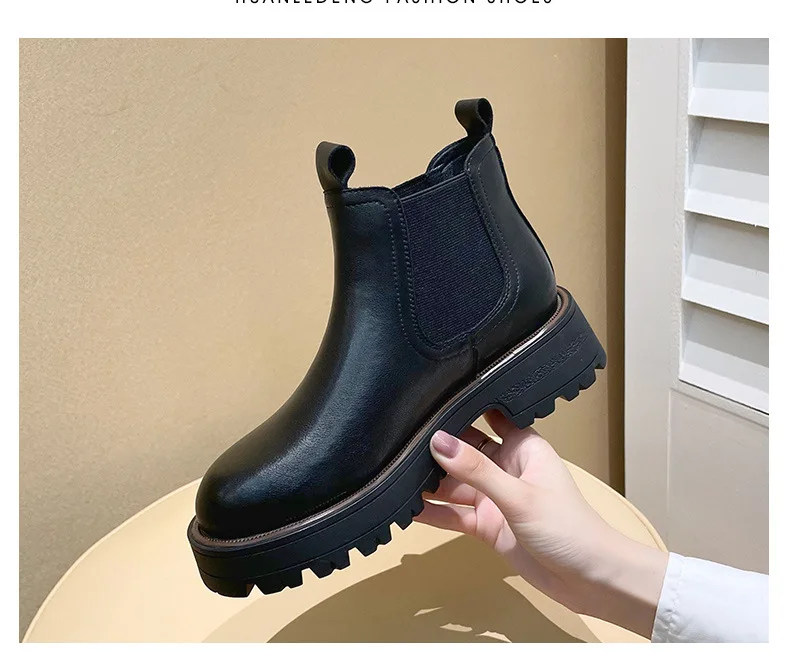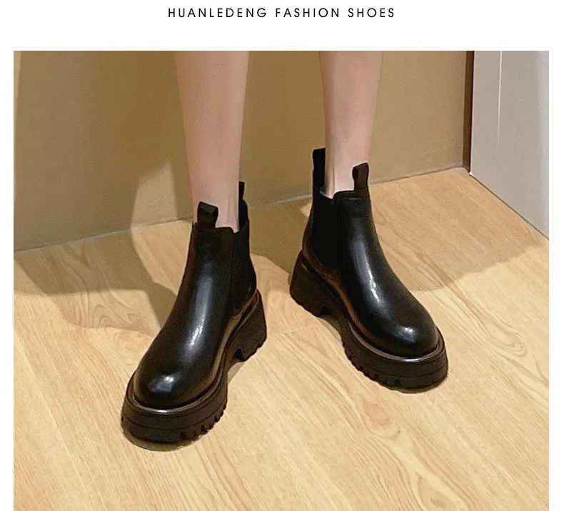 Platform Chelsea Boots Women Genuine Leather Ankle Boots 2021 Autumn Slip on Booties Ladies Fashion Female Boot Botas De Mujer