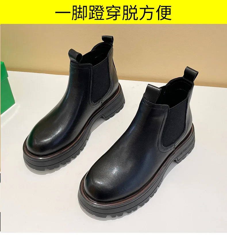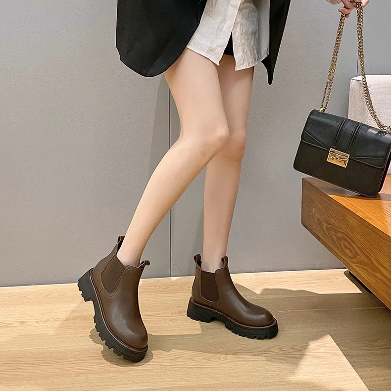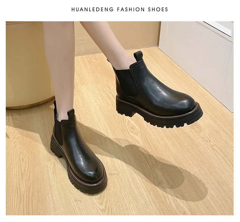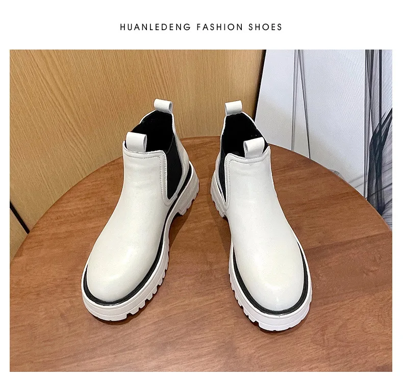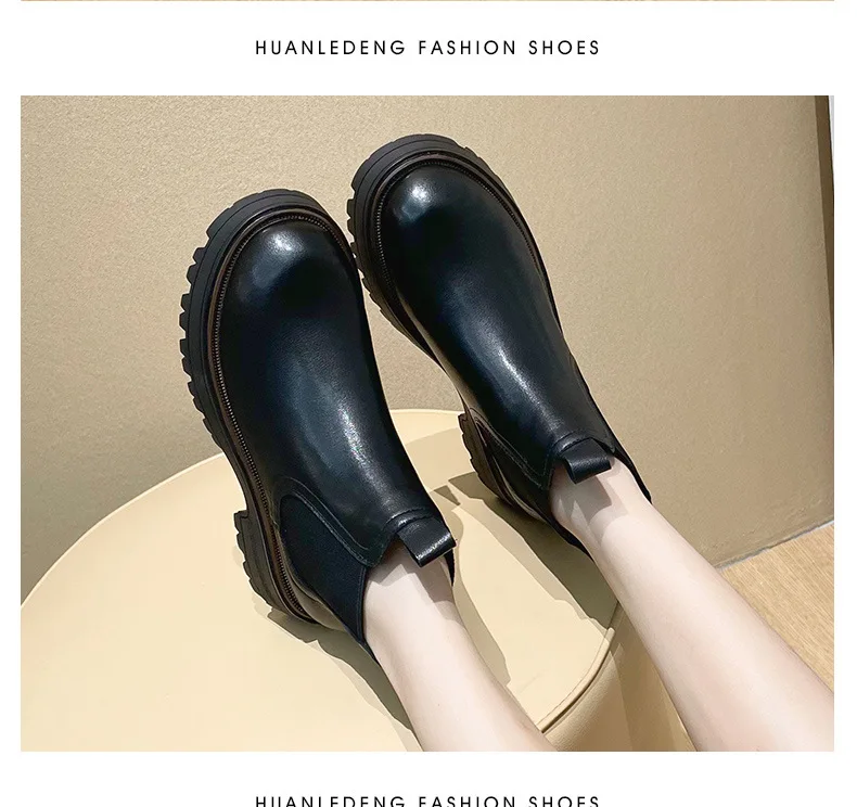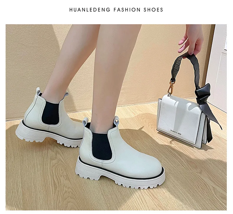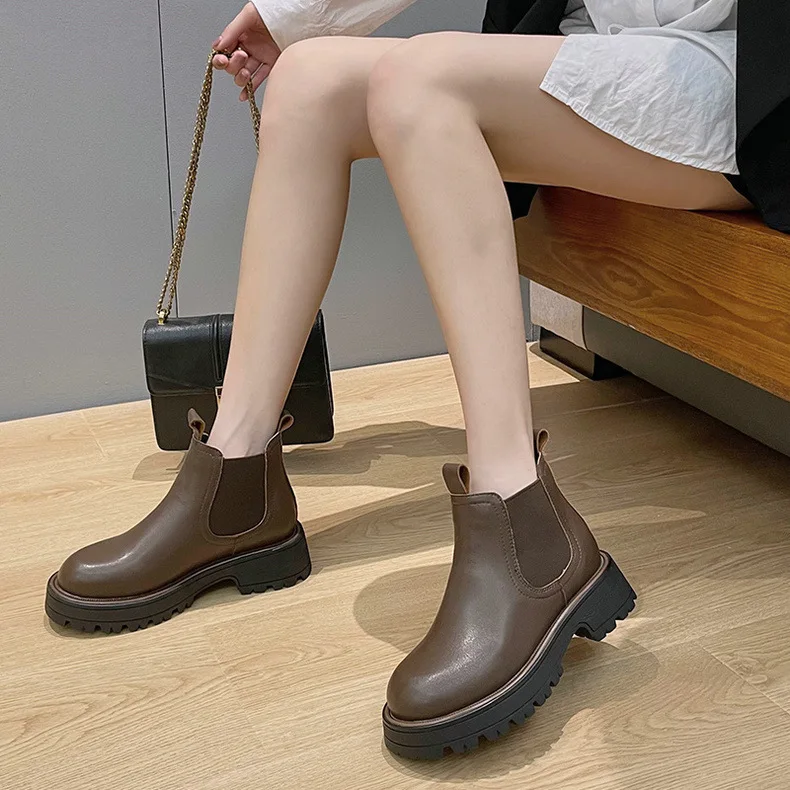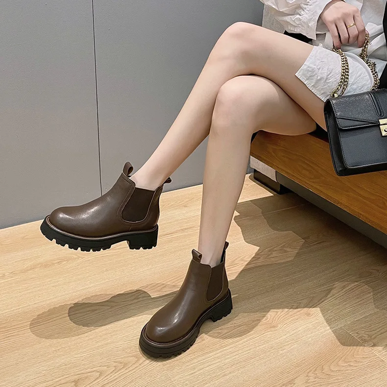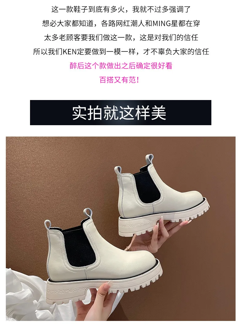 Platform Chelsea Boots Women Genuine Leather Ankle Boots 2021 Autumn Slip on Booties Ladies Fashion Female Boot Botas De Mujer