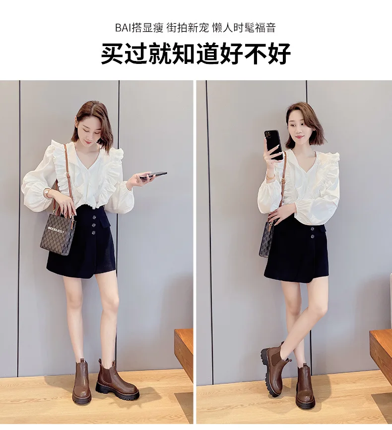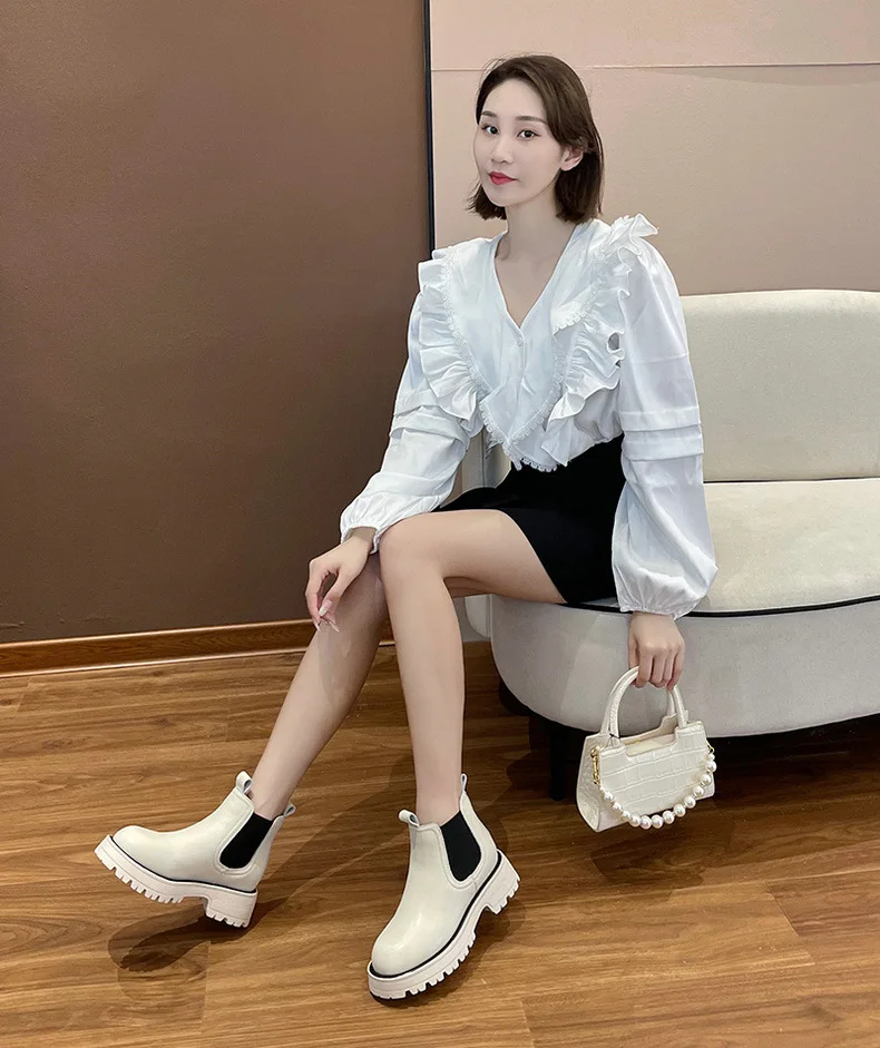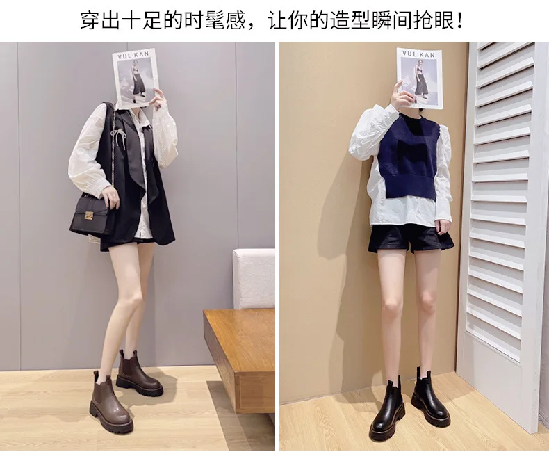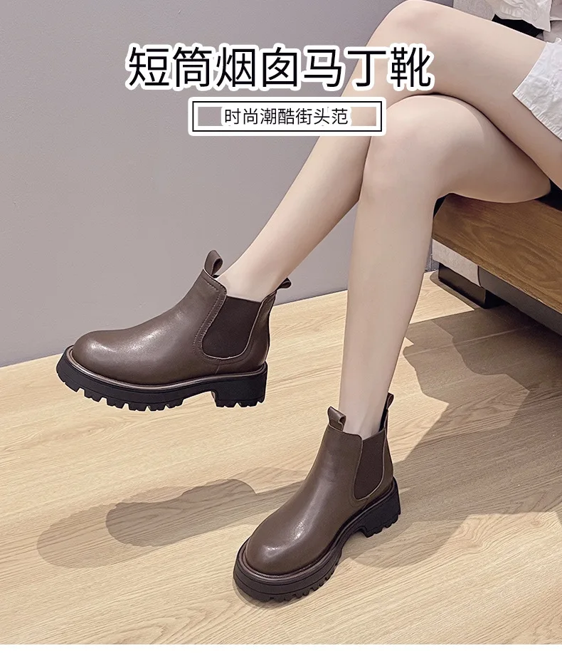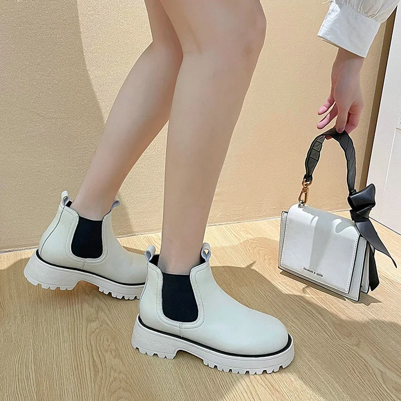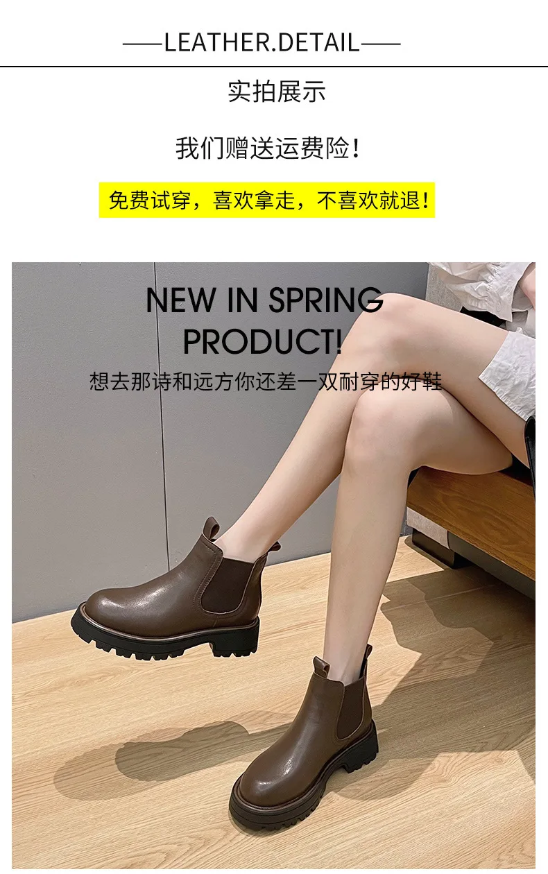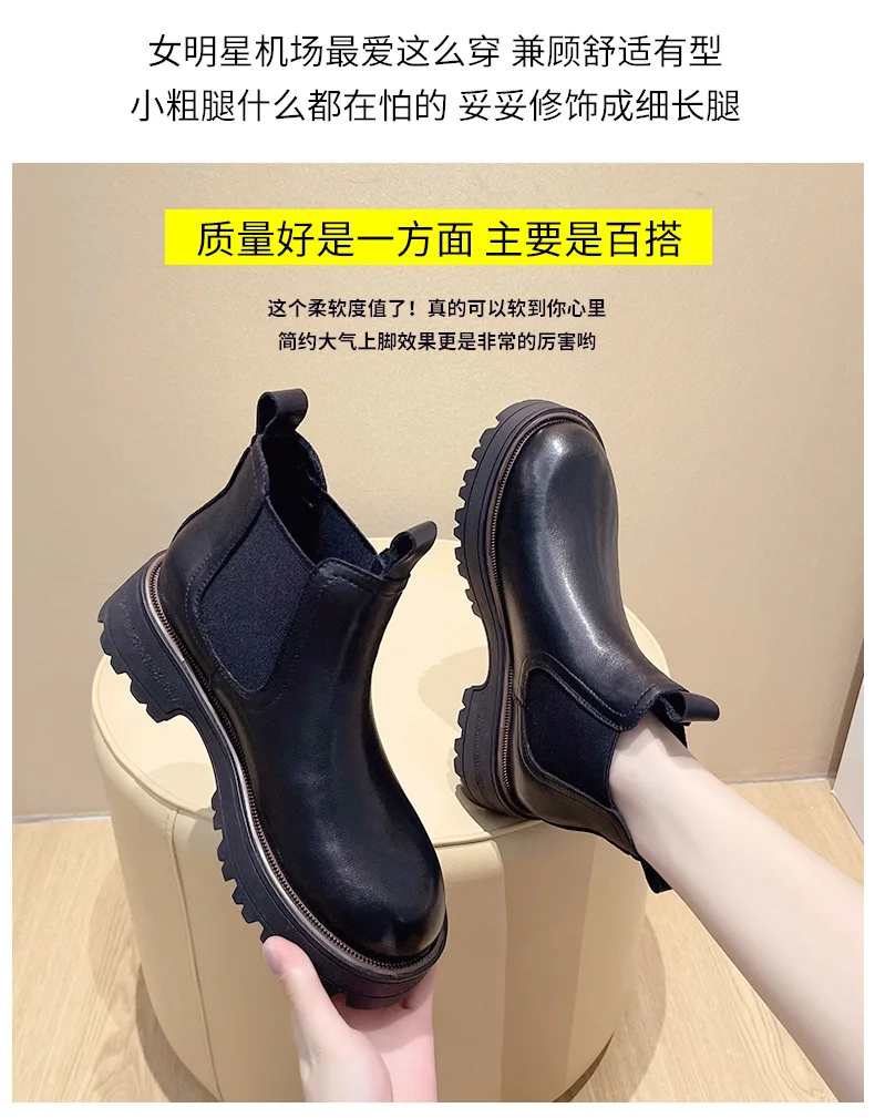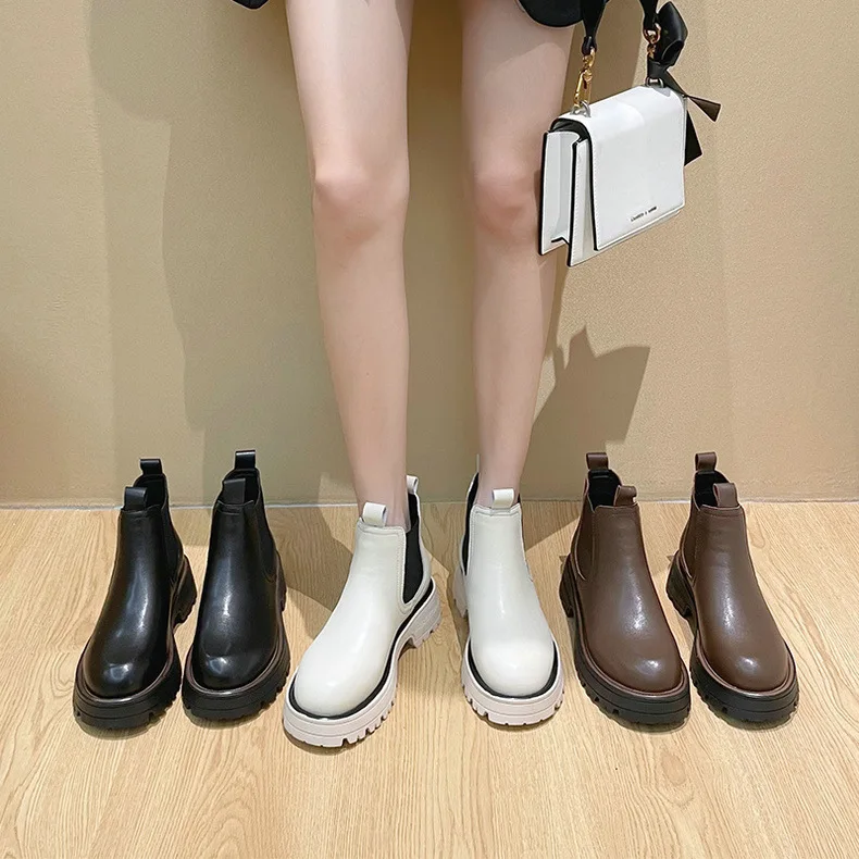 Platform Chelsea Boots Women Genuine Leather Ankle Boots 2021 Autumn Slip on Booties Ladies Fashion Female Boot Botas De Mujer