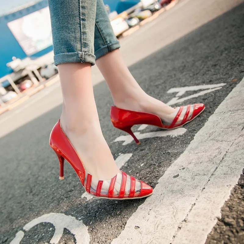 Plus big size 34-47 New 2017 pointed toe women pumps Genuine Patent leather spike heels women high heels shoes c-311