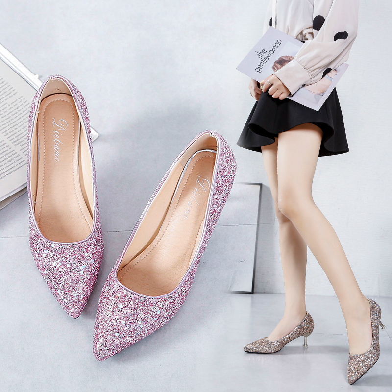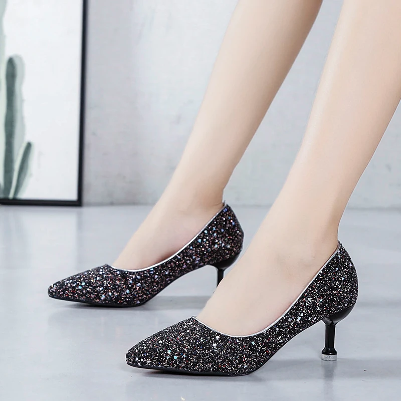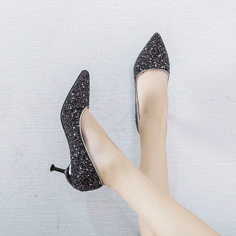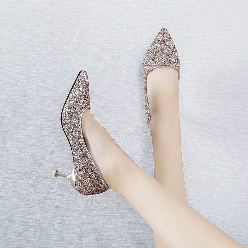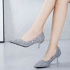 Plus Size 41 Women Wedding Shoes Bling High Heels Dress Shoes Silver Bridal Shoes Woman Pump Pointed Toe Glitter Boat Shoe 7979N