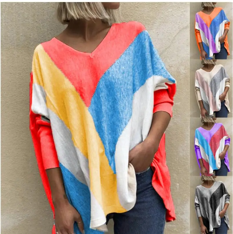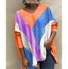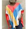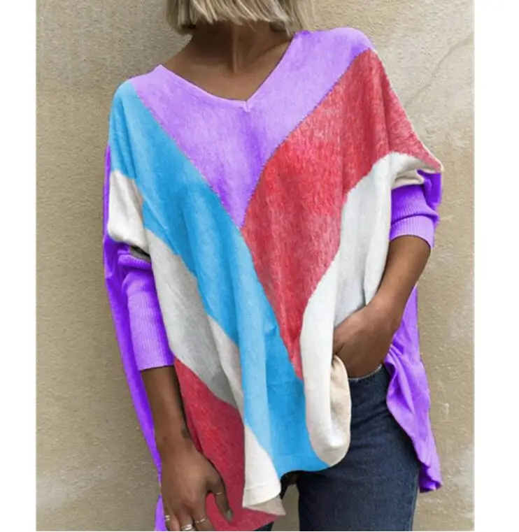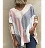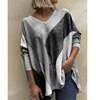 Plus Size 5xl Blouse Shirt Scpiped Ladies Elegant Casual Women Tops Pullovers 2020 Autumn Winter V-neck Tee Shirt Femme