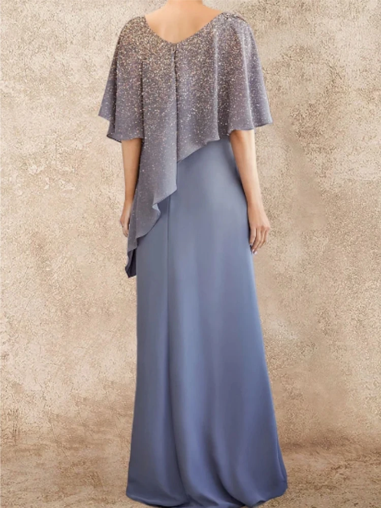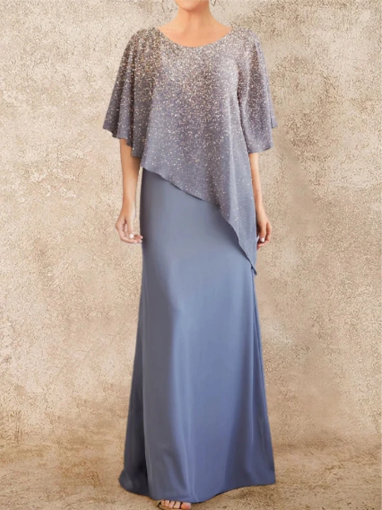 Plus Size Dress for Women Elegant Evening Dress Bride Mom Grey Blue Chiffon Ombre Sparkling Print Irregular Women’s Maxi Dress