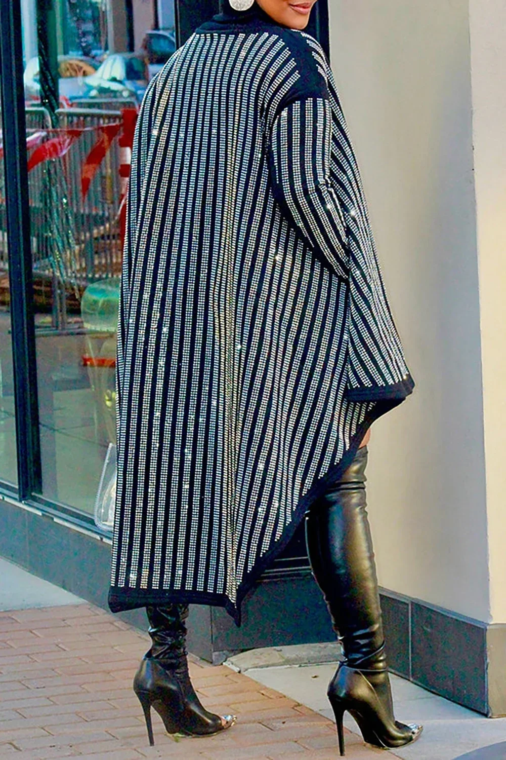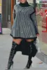 Plus Size Party Mini Dresses Striped Casual Stand Collar Fall Winter Long Sleeve Irregular Hem Cotton Vintage Fashion Dresses