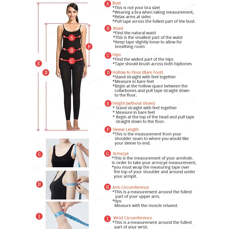 1.Dear friend,Please tell us the following size in order to customize fitted dress for you,( 1inch = 2.54cm )