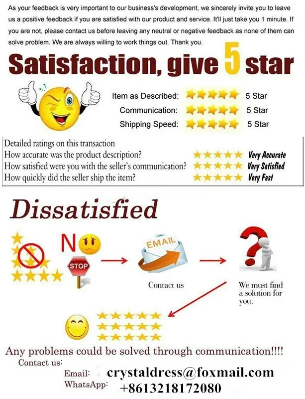 Customer satisfaction is very important to us and our feedback rating reflects this satisfaction. Hope you to receive item after and can give us a positive feedback. Certainly we will also give you a positive feedback! In addition to your positive feedback, we hope you will give us “Five Star” on all of the Detailed Seller Ratings.
