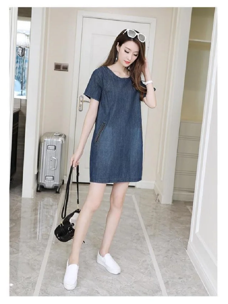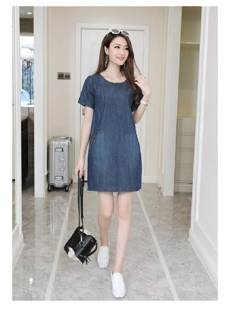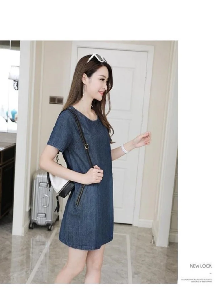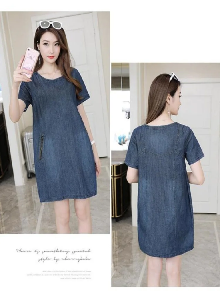 Plus size Women A Line Dresses Mid-length Casual Loose Soft Denim Dress Slim Female Skirt Oversizes Woman Elegant Style Fashion