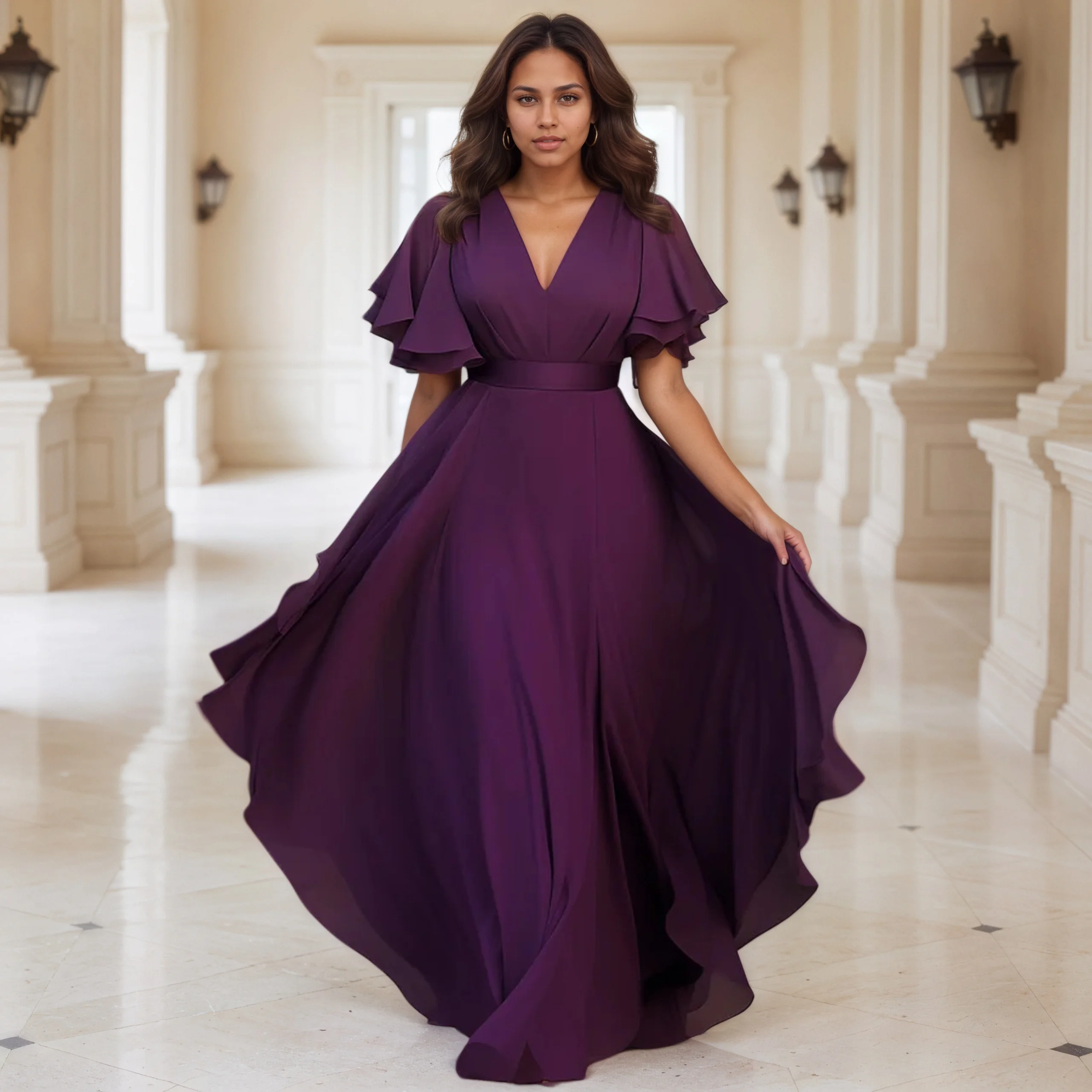 Plus Size Women Clothing Party Evening Dresses Elegant And Pretty Chiffon Flutter Sleeve Women’s Dresses Soft Vestidos De Noche